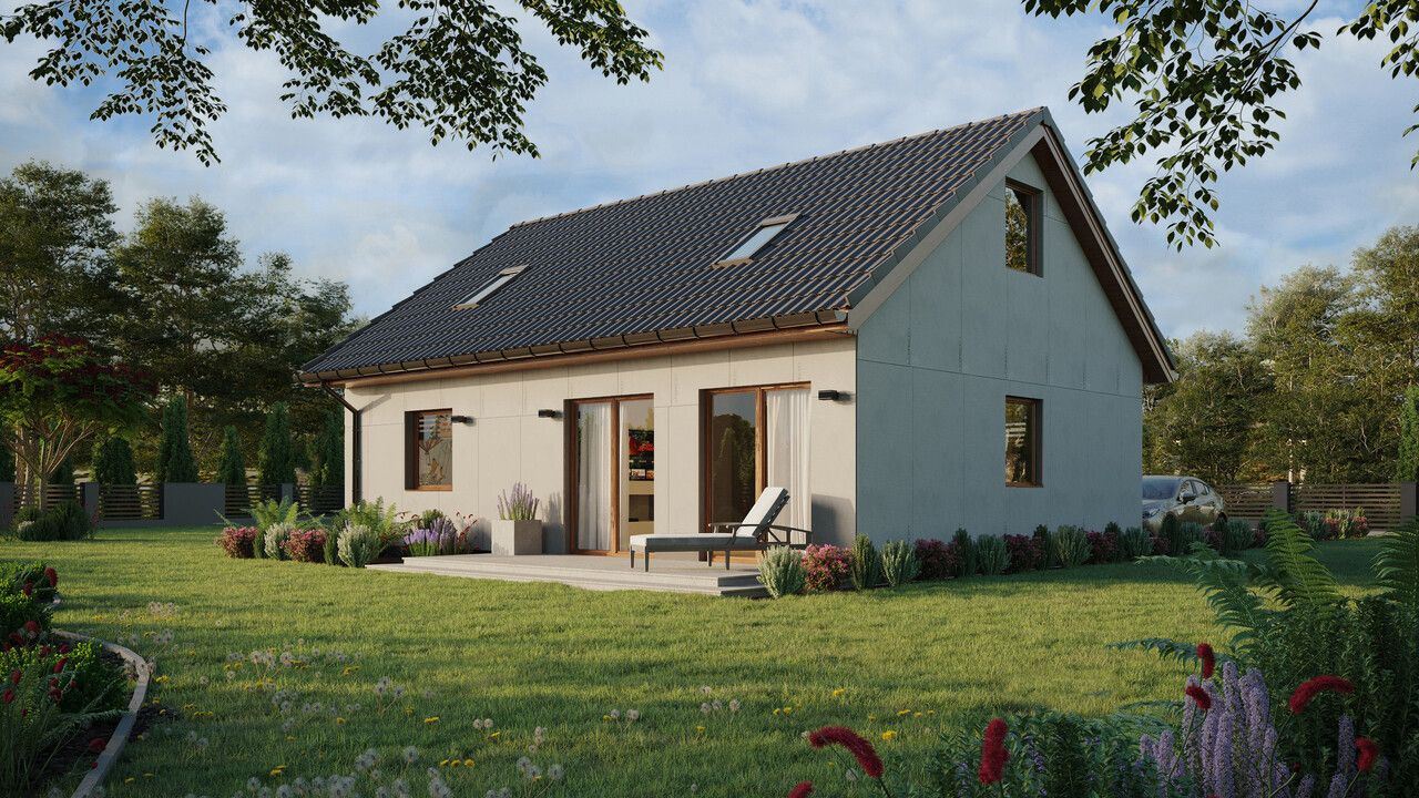 ERDOL 1 XL to powiększona wersja naszego bazowego projektu. Dom ten ma powierzchnię 74 m² (116 m² jeśli wybrana zostanie wersja z poddaszem użytkowym) i oferuje swoim mieszkańcom dobrze przemyślaną przestrzeń na kompaktowej powierzchni. Dzięki stosunkowo niewielkim rozmiarom ERDOL 1 XL jest domem tanim w utrzymaniu i wygodnym w codziennym funkcjonowaniu. Do jego stworzenia wykorzystaliśmy najwyższej jakości drewno KVH oraz energooszczędne rozwiązania i systemy, które sprawiają, że budynek jest przyjazny dla środowiska. Jeśli poszukujesz domu, który zapewni Ci komfort i pozwoli na oszczędności, ten model to doskonały wybór.