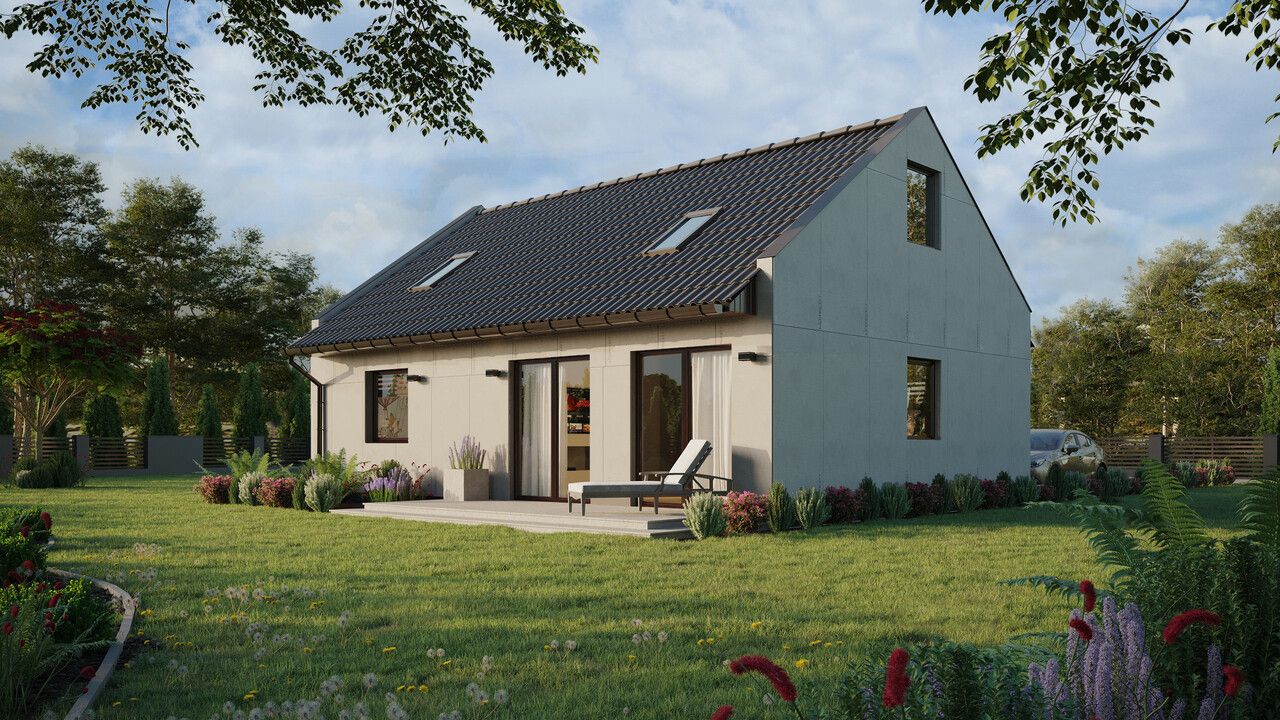 ERDOL 1 XL to powiększona wersja naszego bazowego projektu. Dom ten ma powierzchnię 74 m² (116 m² jeśli wybrana zostanie wersja z poddaszem użytkowym) i oferuje swoim mieszkańcom dobrze przemyślaną przestrzeń na kompaktowej powierzchni. Dzięki stosunkowo niewielkim rozmiarom ERDOL 1 XL jest domem tanim w utrzymaniu i wygodnym w codziennym funkcjonowaniu. Do jego stworzenia wykorzystaliśmy najwyższej jakości drewno KVH oraz energooszczędne rozwiązania i systemy, które sprawiają, że budynek jest przyjazny dla środowiska. Jeśli poszukujesz domu, który zapewni Ci komfort i pozwoli na oszczędności, ten model to doskonały wybór.