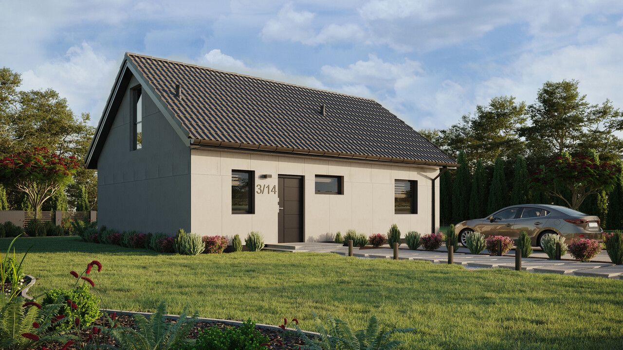 ERDOL 1 XL to powiększona wersja naszego bazowego projektu. Dom ten ma powierzchnię 74 m² (116 m² jeśli wybrana zostanie wersja z poddaszem użytkowym) i oferuje swoim mieszkańcom dobrze przemyślaną przestrzeń na kompaktowej powierzchni. Dzięki stosunkowo niewielkim rozmiarom ERDOL 1 XL jest domem tanim w utrzymaniu i wygodnym w codziennym funkcjonowaniu. Do jego stworzenia wykorzystaliśmy najwyższej jakości drewno KVH oraz energooszczędne rozwiązania i systemy, które sprawiają, że budynek jest przyjazny dla środowiska. Jeśli poszukujesz domu, który zapewni Ci komfort i pozwoli na oszczędności, ten model to doskonały wybór.