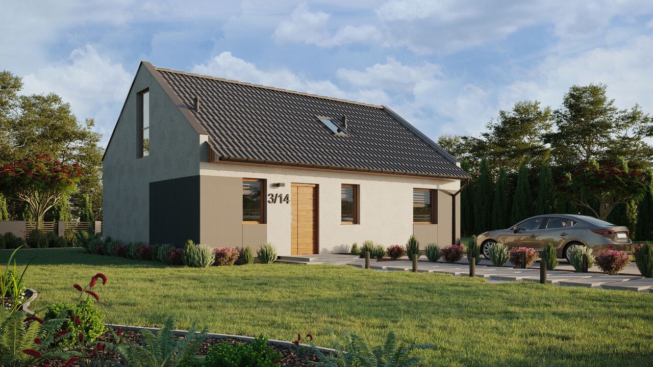 ERDOL 1 XL to powiększona wersja naszego bazowego projektu. Dom ten ma powierzchnię 74 m² (116 m² jeśli wybrana zostanie wersja z poddaszem użytkowym) i oferuje swoim mieszkańcom dobrze przemyślaną przestrzeń na kompaktowej powierzchni. Dzięki stosunkowo niewielkim rozmiarom ERDOL 1 XL jest domem tanim w utrzymaniu i wygodnym w codziennym funkcjonowaniu. Do jego stworzenia wykorzystaliśmy najwyższej jakości drewno KVH oraz energooszczędne rozwiązania i systemy, które sprawiają, że budynek jest przyjazny dla środowiska. Jeśli poszukujesz domu, który zapewni Ci komfort i pozwoli na oszczędności, ten model to doskonały wybór.