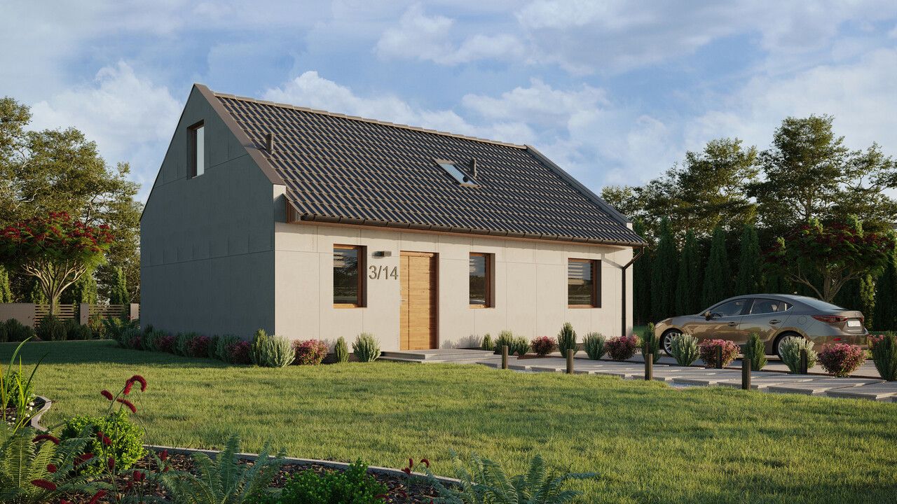ERDOL 1 XL to powiększona wersja naszego bazowego projektu. Dom ten ma powierzchnię 74 m² (116 m² jeśli wybrana zostanie wersja z poddaszem użytkowym) i oferuje swoim mieszkańcom dobrze przemyślaną przestrzeń na kompaktowej powierzchni. Dzięki stosunkowo niewielkim rozmiarom ERDOL 1 XL jest domem tanim w utrzymaniu i wygodnym w codziennym funkcjonowaniu. Do jego stworzenia wykorzystaliśmy najwyższej jakości drewno KVH oraz energooszczędne rozwiązania i systemy, które sprawiają, że budynek jest przyjazny dla środowiska. Jeśli poszukujesz domu, który zapewni Ci komfort i pozwoli na oszczędności, ten model to doskonały wybór.