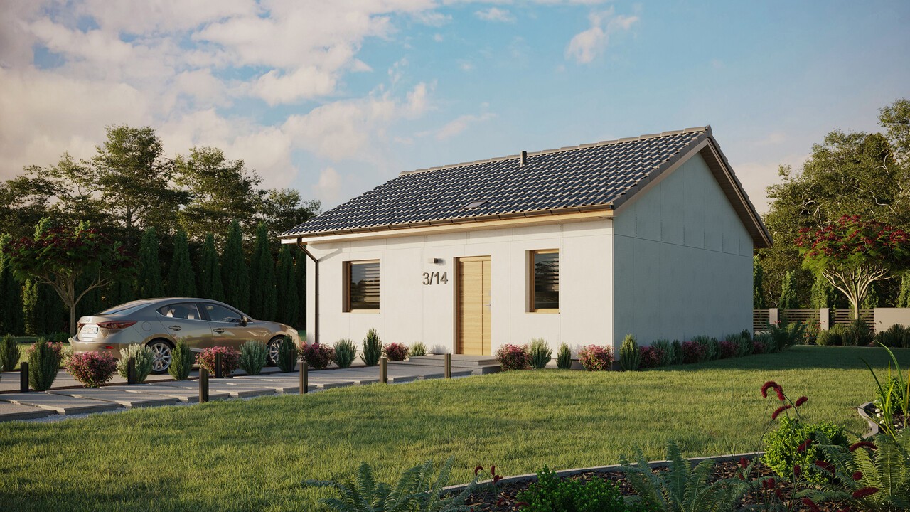Dom ERDOL 1 o powierzchni 59 m² (90 m² w wersji z poddaszem użytkowym) zapewnia swoim mieszkańcom wygodną przestrzeń, w której wszystko, czego potrzebują, mają pod ręką. Niewielkie rozmiary sprawiają, że jest łatwy i tani w utrzymaniu, co w połączeniu z wykorzystanymi do budowy nowoczesnymi i ekologicznymi rozwiązaniami daje nam pewność, że jest to dom funkcjonujący w zgodzie z naturą. Jedną z jego zalet jest także niewielka powierzchnia zabudowy wynosząca zaledwie 70 m², dzięki czemu do jego budowy nie potrzeba pozwolenia. Konieczne jest jedynie zgłoszenie budowy.