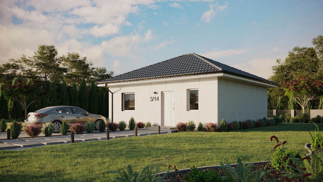 Dom ERDOL 1 o powierzchni 59 m² (90 m² w wersji z poddaszem użytkowym) zapewnia swoim mieszkańcom wygodną przestrzeń, w której wszystko, czego potrzebują, mają pod ręką. Niewielkie rozmiary sprawiają, że jest łatwy i tani w utrzymaniu, co w połączeniu z wykorzystanymi do budowy nowoczesnymi i ekologicznymi rozwiązaniami daje nam pewność, że jest to dom funkcjonujący w zgodzie z naturą. Jedną z jego zalet jest także niewielka powierzchnia zabudowy wynosząca zaledwie 70 m², dzięki czemu do jego budowy nie potrzeba pozwolenia. Konieczne jest jedynie zgłoszenie budowy.