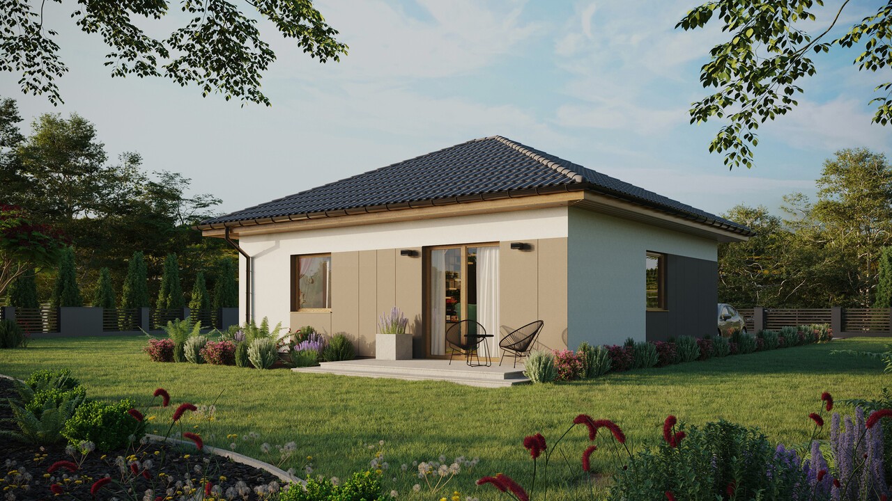 Dom ERDOL 1 o powierzchni 59 m² (90 m² w wersji z poddaszem użytkowym) zapewnia swoim mieszkańcom wygodną przestrzeń, w której wszystko, czego potrzebują, mają pod ręką. Niewielkie rozmiary sprawiają, że jest łatwy i tani w utrzymaniu, co w połączeniu z wykorzystanymi do budowy nowoczesnymi i ekologicznymi rozwiązaniami daje nam pewność, że jest to dom funkcjonujący w zgodzie z naturą. Jedną z jego zalet jest także niewielka powierzchnia zabudowy wynosząca zaledwie 70 m², dzięki czemu do jego budowy nie potrzeba pozwolenia. Konieczne jest jedynie zgłoszenie budowy.