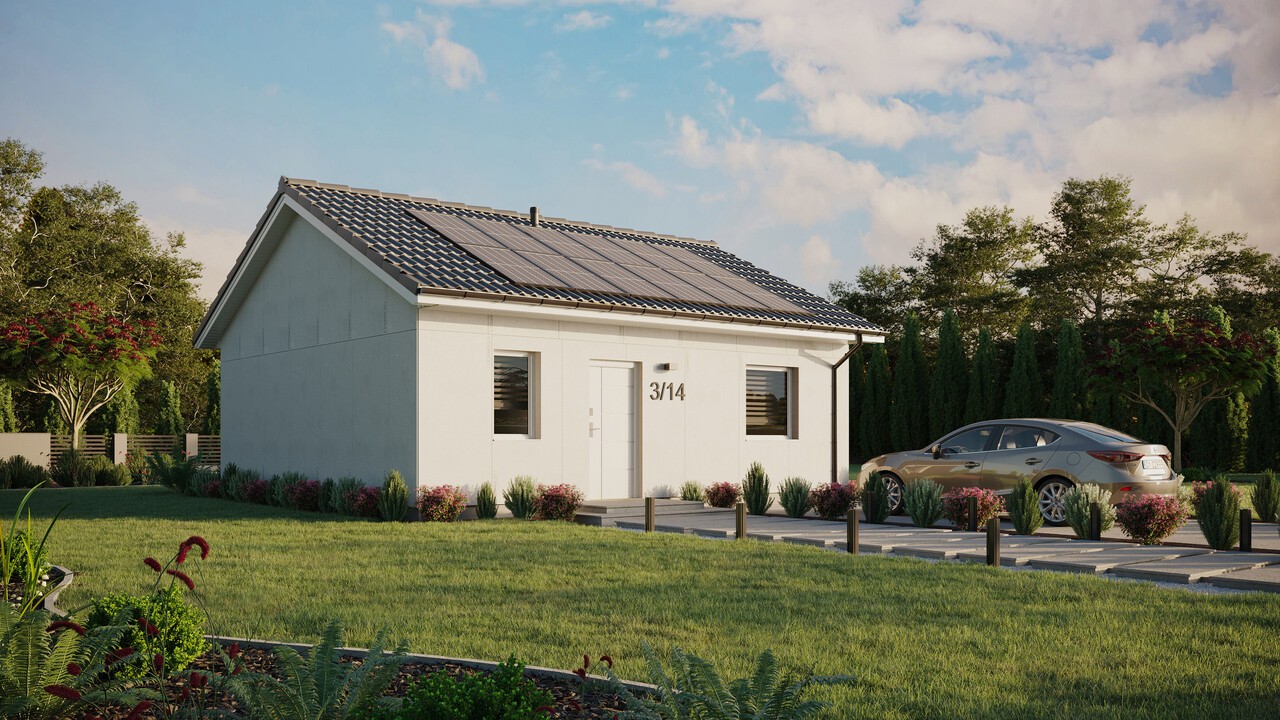 Dom ERDOL 1 o powierzchni 59 m² (90 m² w wersji z poddaszem użytkowym) zapewnia swoim mieszkańcom wygodną przestrzeń, w której wszystko, czego potrzebują, mają pod ręką. Niewielkie rozmiary sprawiają, że jest łatwy i tani w utrzymaniu, co w połączeniu z wykorzystanymi do budowy nowoczesnymi i ekologicznymi rozwiązaniami daje nam pewność, że jest to dom funkcjonujący w zgodzie z naturą. Jedną z jego zalet jest także niewielka powierzchnia zabudowy wynosząca zaledwie 70 m², dzięki czemu do jego budowy nie potrzeba pozwolenia. Konieczne jest jedynie zgłoszenie budowy.
