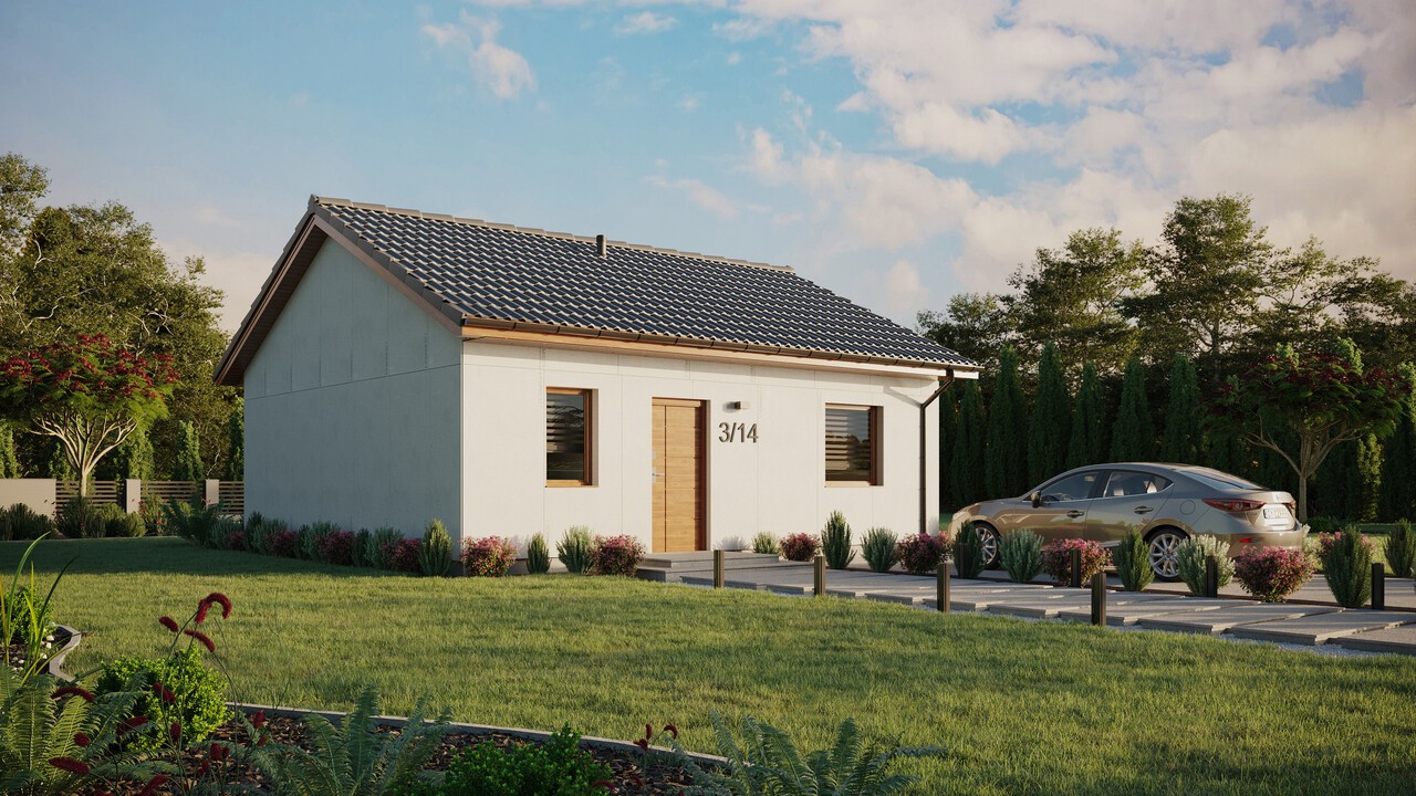 Dom ERDOL 1 o powierzchni 59 m² (90 m² w wersji z poddaszem użytkowym) zapewnia swoim mieszkańcom wygodną przestrzeń, w której wszystko, czego potrzebują, mają pod ręką. Niewielkie rozmiary sprawiają, że jest łatwy i tani w utrzymaniu, co w połączeniu z wykorzystanymi do budowy nowoczesnymi i ekologicznymi rozwiązaniami daje nam pewność, że jest to dom funkcjonujący w zgodzie z naturą. Jedną z jego zalet jest także niewielka powierzchnia zabudowy wynosząca zaledwie 70 m², dzięki czemu do jego budowy nie potrzeba pozwolenia. Konieczne jest jedynie zgłoszenie budowy.