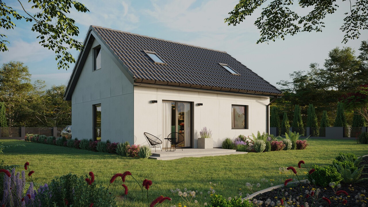 Dom ERDOL 1 o powierzchni 59 m² (90 m² w wersji z poddaszem użytkowym) zapewnia swoim mieszkańcom wygodną przestrzeń, w której wszystko, czego potrzebują, mają pod ręką. Niewielkie rozmiary sprawiają, że jest łatwy i tani w utrzymaniu, co w połączeniu z wykorzystanymi do budowy nowoczesnymi i ekologicznymi rozwiązaniami daje nam pewność, że jest to dom funkcjonujący w zgodzie z naturą. Jedną z jego zalet jest także niewielka powierzchnia zabudowy wynosząca zaledwie 70 m², dzięki czemu do jego budowy nie potrzeba pozwolenia. Konieczne jest jedynie zgłoszenie budowy.