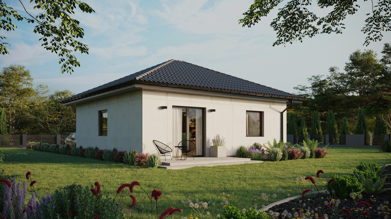 Dom ERDOL 1 o powierzchni 59 m² (90 m² w wersji z poddaszem użytkowym) zapewnia swoim mieszkańcom wygodną przestrzeń, w której wszystko, czego potrzebują, mają pod ręką. Niewielkie rozmiary sprawiają, że jest łatwy i tani w utrzymaniu, co w połączeniu z wykorzystanymi do budowy nowoczesnymi i ekologicznymi rozwiązaniami daje nam pewność, że jest to dom funkcjonujący w zgodzie z naturą. Jedną z jego zalet jest także niewielka powierzchnia zabudowy wynosząca zaledwie 70 m², dzięki czemu do jego budowy nie potrzeba pozwolenia. Konieczne jest jedynie zgłoszenie budowy.