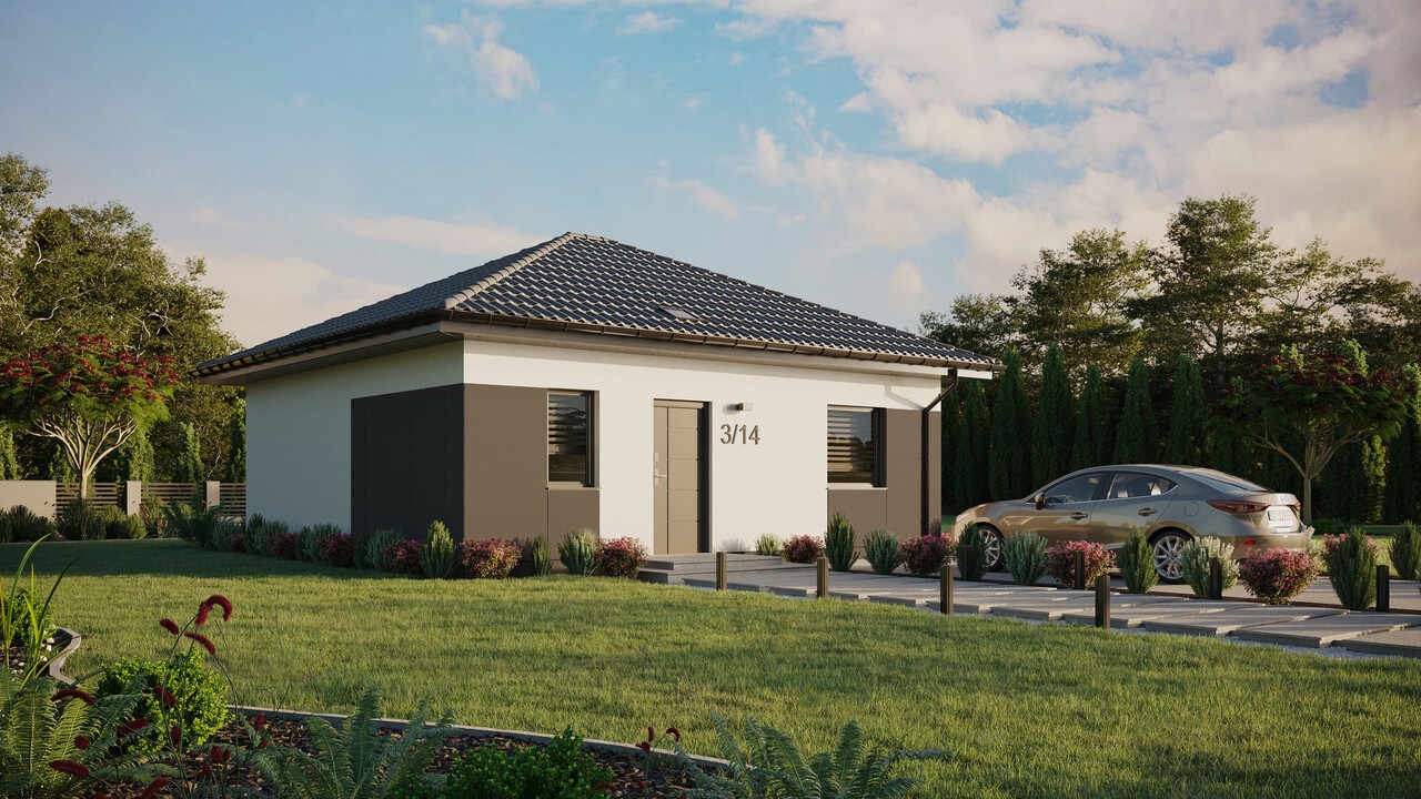 Dom ERDOL 1 o powierzchni 59 m² (90 m² w wersji z poddaszem użytkowym) zapewnia swoim mieszkańcom wygodną przestrzeń, w której wszystko, czego potrzebują, mają pod ręką. Niewielkie rozmiary sprawiają, że jest łatwy i tani w utrzymaniu, co w połączeniu z wykorzystanymi do budowy nowoczesnymi i ekologicznymi rozwiązaniami daje nam pewność, że jest to dom funkcjonujący w zgodzie z naturą. Jedną z jego zalet jest także niewielka powierzchnia zabudowy wynosząca zaledwie 70 m², dzięki czemu do jego budowy nie potrzeba pozwolenia. Konieczne jest jedynie zgłoszenie budowy.