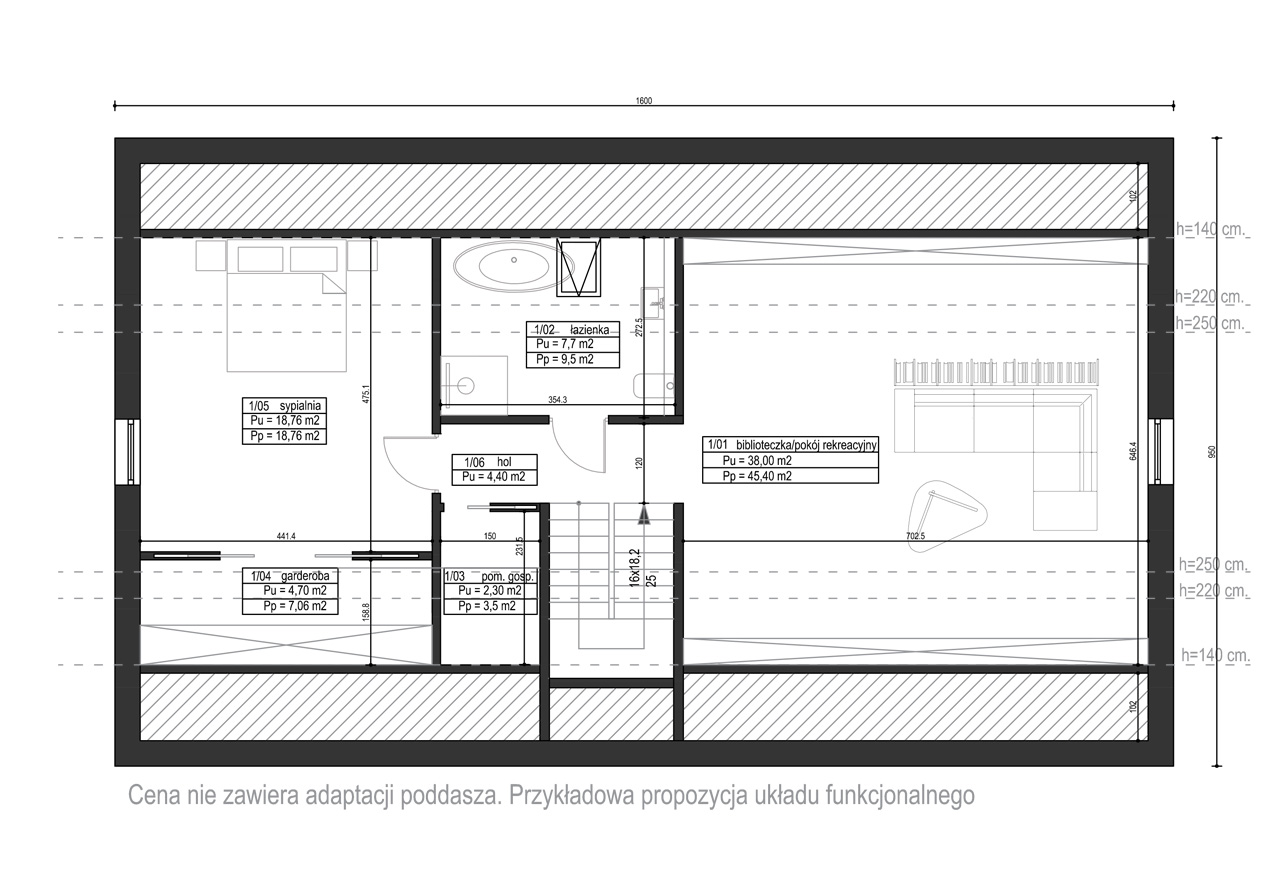 - Zagospodarowanie i aranżacja poddasza, tj. wykonanie wentylacji poddasza, wykonanie podłogi, ścian działowych, sufitów i skosów, rozprowadzenie instalacji elektrycznej oraz wodno-kanalizacyjnej