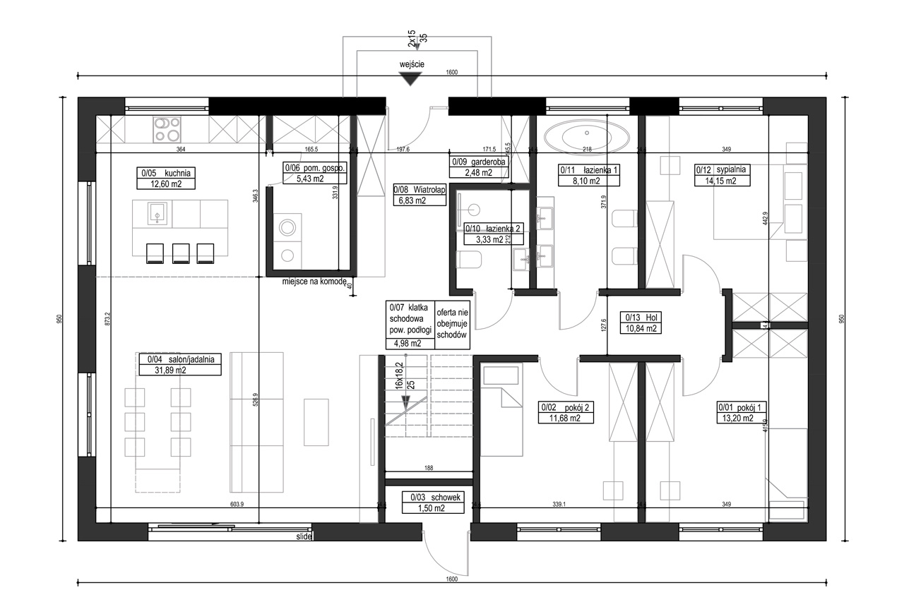 - Instalacje wewnętrzne: elektryczna, wod. kan., ogrzewanie, wentylacja mechaniczna (rekuperacja).