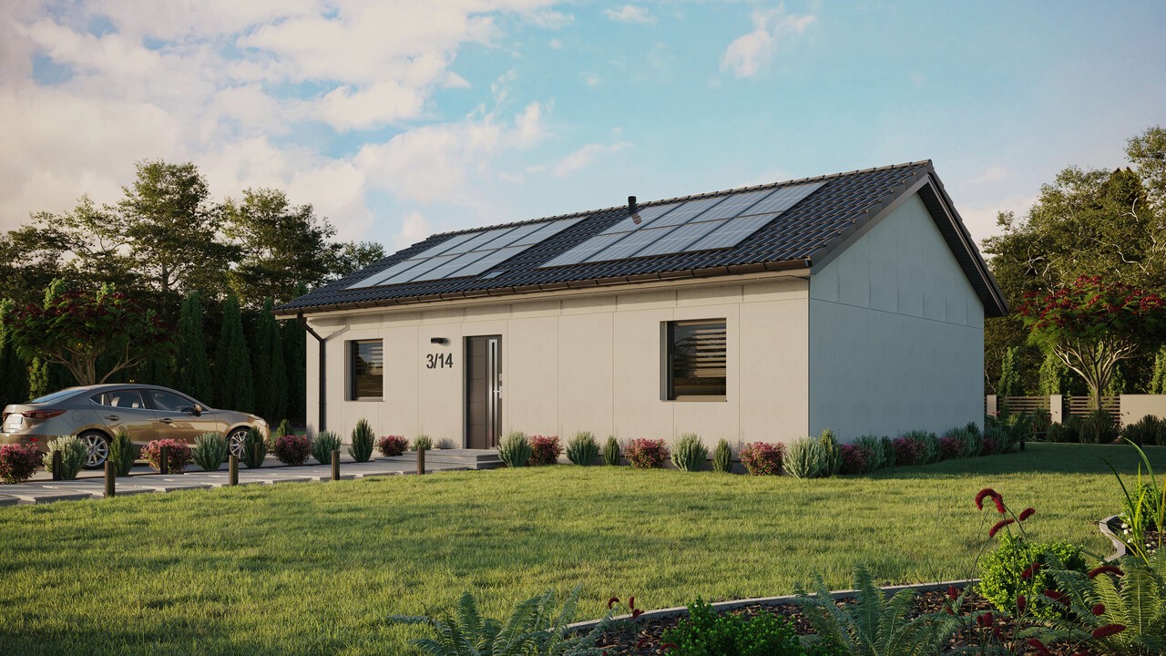 Dom ERDOL 2 XL ma powierzchnię 82 m² (130 m² w przypadku projektu z poddaszem użytkowym) i jest wydłużoną wersją domu ERDOL 2. Jest to doskonała propozycja dla wszystkich osób, które w swoim domu nie potrzebują dużej liczby pomieszczeń, jednak chcą skorzystać z dodatkowego metrażu, dzięki czemu zyskują więcej przestrzeni do wygodnego funkcjonowania. Zastosowane w tym projekcie nowoczesne technologie i ekologiczne rozwiązania sprawiają, że jest to dom energooszczędny, który funkcjonuje w harmonii z naturą. Do budowy wykorzystuje się drewno KVH stanowiące podstawę całej konstrukcji. Odpowiednio dobrane materiały izolacyjne sprawiają, że dom chroniony jest przed stratami ciepła.