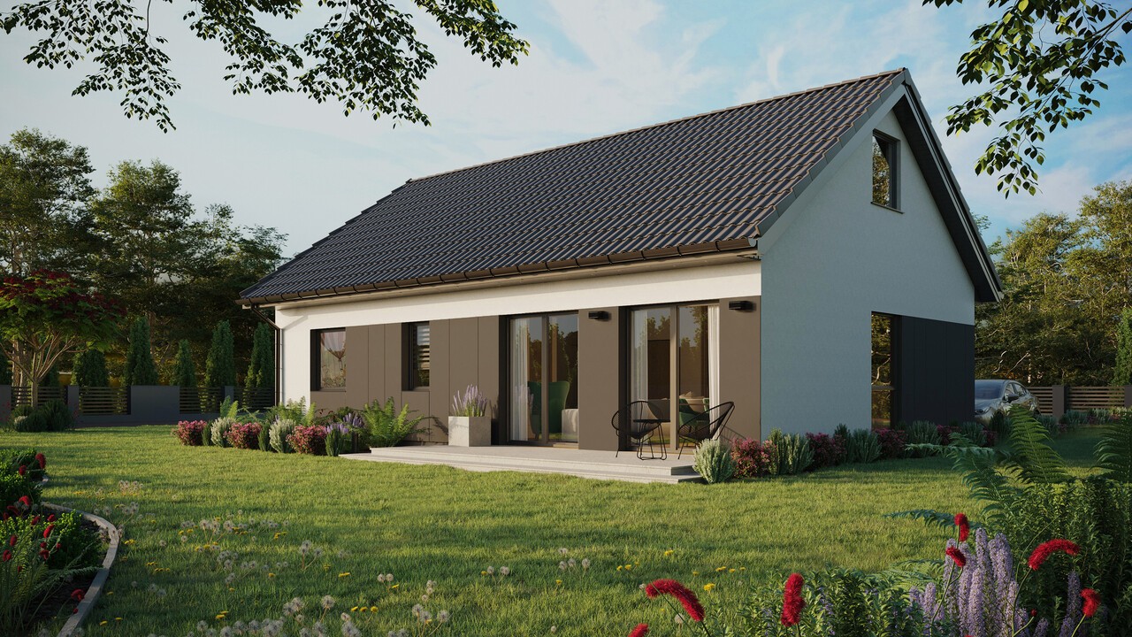 Dom ERDOL 2 XL ma powierzchnię 82 m² (130 m² w przypadku projektu z poddaszem użytkowym) i jest wydłużoną wersją domu ERDOL 2. Jest to doskonała propozycja dla wszystkich osób, które w swoim domu nie potrzebują dużej liczby pomieszczeń, jednak chcą skorzystać z dodatkowego metrażu, dzięki czemu zyskują więcej przestrzeni do wygodnego funkcjonowania. Zastosowane w tym projekcie nowoczesne technologie i ekologiczne rozwiązania sprawiają, że jest to dom energooszczędny, który funkcjonuje w harmonii z naturą. Do budowy wykorzystuje się drewno KVH stanowiące podstawę całej konstrukcji. Odpowiednio dobrane materiały izolacyjne sprawiają, że dom chroniony jest przed stratami ciepła.