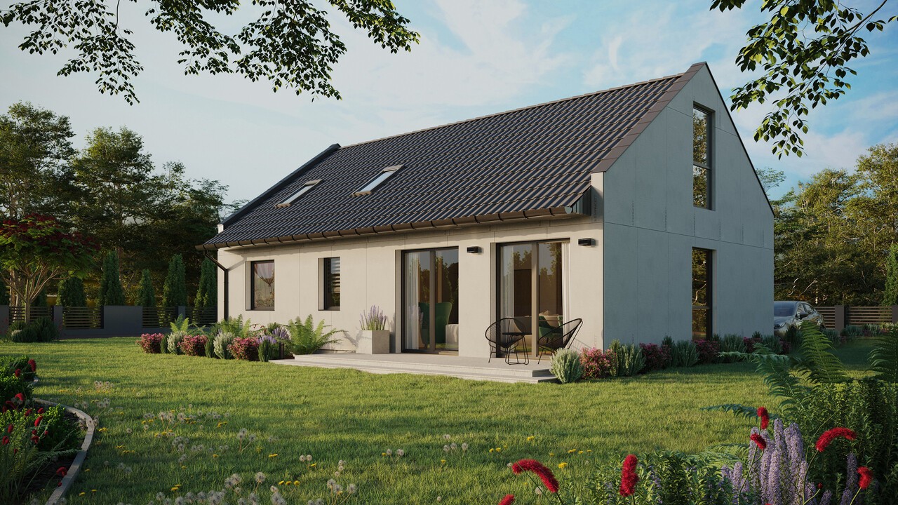 Dom ERDOL 2 XL ma powierzchnię 82 m² (130 m² w przypadku projektu z poddaszem użytkowym) i jest wydłużoną wersją domu ERDOL 2. Jest to doskonała propozycja dla wszystkich osób, które w swoim domu nie potrzebują dużej liczby pomieszczeń, jednak chcą skorzystać z dodatkowego metrażu, dzięki czemu zyskują więcej przestrzeni do wygodnego funkcjonowania. Zastosowane w tym projekcie nowoczesne technologie i ekologiczne rozwiązania sprawiają, że jest to dom energooszczędny, który funkcjonuje w harmonii z naturą. Do budowy wykorzystuje się drewno KVH stanowiące podstawę całej konstrukcji. Odpowiednio dobrane materiały izolacyjne sprawiają, że dom chroniony jest przed stratami ciepła.