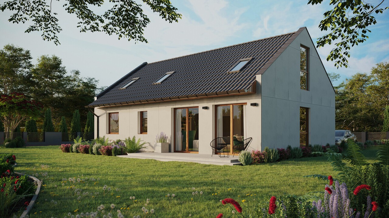 Dom ERDOL 2 XL ma powierzchnię 82 m² (130 m² w przypadku projektu z poddaszem użytkowym) i jest wydłużoną wersją domu ERDOL 2. Jest to doskonała propozycja dla wszystkich osób, które w swoim domu nie potrzebują dużej liczby pomieszczeń, jednak chcą skorzystać z dodatkowego metrażu, dzięki czemu zyskują więcej przestrzeni do wygodnego funkcjonowania. Zastosowane w tym projekcie nowoczesne technologie i ekologiczne rozwiązania sprawiają, że jest to dom energooszczędny, który funkcjonuje w harmonii z naturą. Do budowy wykorzystuje się drewno KVH stanowiące podstawę całej konstrukcji. Odpowiednio dobrane materiały izolacyjne sprawiają, że dom chroniony jest przed stratami ciepła.