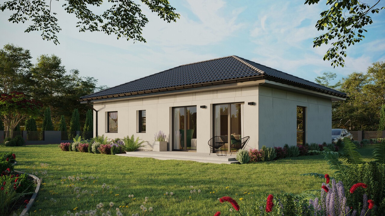 Dom ERDOL 2 XL ma powierzchnię 82 m² (130 m² w przypadku projektu z poddaszem użytkowym) i jest wydłużoną wersją domu ERDOL 2. Jest to doskonała propozycja dla wszystkich osób, które w swoim domu nie potrzebują dużej liczby pomieszczeń, jednak chcą skorzystać z dodatkowego metrażu, dzięki czemu zyskują więcej przestrzeni do wygodnego funkcjonowania. Zastosowane w tym projekcie nowoczesne technologie i ekologiczne rozwiązania sprawiają, że jest to dom energooszczędny, który funkcjonuje w harmonii z naturą. Do budowy wykorzystuje się drewno KVH stanowiące podstawę całej konstrukcji. Odpowiednio dobrane materiały izolacyjne sprawiają, że dom chroniony jest przed stratami ciepła.