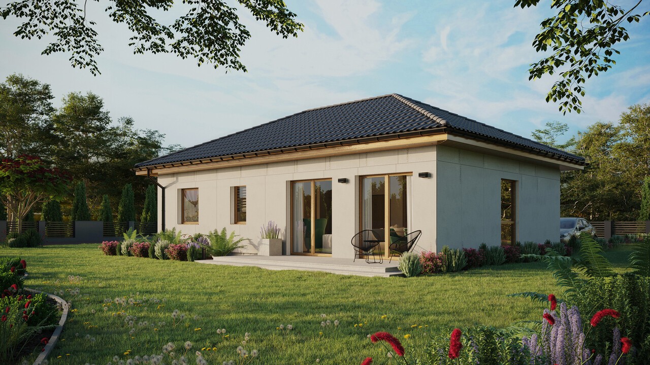 Dom ERDOL 2 XL ma powierzchnię 82 m² (130 m² w przypadku projektu z poddaszem użytkowym) i jest wydłużoną wersją domu ERDOL 2. Jest to doskonała propozycja dla wszystkich osób, które w swoim domu nie potrzebują dużej liczby pomieszczeń, jednak chcą skorzystać z dodatkowego metrażu, dzięki czemu zyskują więcej przestrzeni do wygodnego funkcjonowania. Zastosowane w tym projekcie nowoczesne technologie i ekologiczne rozwiązania sprawiają, że jest to dom energooszczędny, który funkcjonuje w harmonii z naturą. Do budowy wykorzystuje się drewno KVH stanowiące podstawę całej konstrukcji. Odpowiednio dobrane materiały izolacyjne sprawiają, że dom chroniony jest przed stratami ciepła.