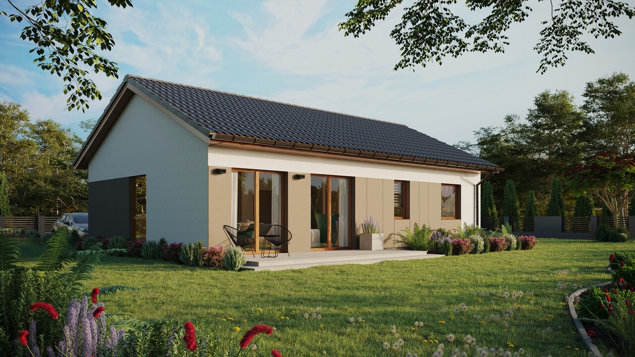 Dom ERDOL 2 XL ma powierzchnię 82 m² (130 m² w przypadku projektu z poddaszem użytkowym) i jest wydłużoną wersją domu ERDOL 2. Jest to doskonała propozycja dla wszystkich osób, które w swoim domu nie potrzebują dużej liczby pomieszczeń, jednak chcą skorzystać z dodatkowego metrażu, dzięki czemu zyskują więcej przestrzeni do wygodnego funkcjonowania. Zastosowane w tym projekcie nowoczesne technologie i ekologiczne rozwiązania sprawiają, że jest to dom energooszczędny, który funkcjonuje w harmonii z naturą. Do budowy wykorzystuje się drewno KVH stanowiące podstawę całej konstrukcji. Odpowiednio dobrane materiały izolacyjne sprawiają, że dom chroniony jest przed stratami ciepła.