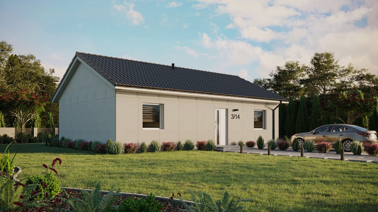 Dom ERDOL 2 XL ma powierzchnię 82 m² (130 m² w przypadku projektu z poddaszem użytkowym) i jest wydłużoną wersją domu ERDOL 2. Jest to doskonała propozycja dla wszystkich osób, które w swoim domu nie potrzebują dużej liczby pomieszczeń, jednak chcą skorzystać z dodatkowego metrażu, dzięki czemu zyskują więcej przestrzeni do wygodnego funkcjonowania. Zastosowane w tym projekcie nowoczesne technologie i ekologiczne rozwiązania sprawiają, że jest to dom energooszczędny, który funkcjonuje w harmonii z naturą. Do budowy wykorzystuje się drewno KVH stanowiące podstawę całej konstrukcji. Odpowiednio dobrane materiały izolacyjne sprawiają, że dom chroniony jest przed stratami ciepła.
