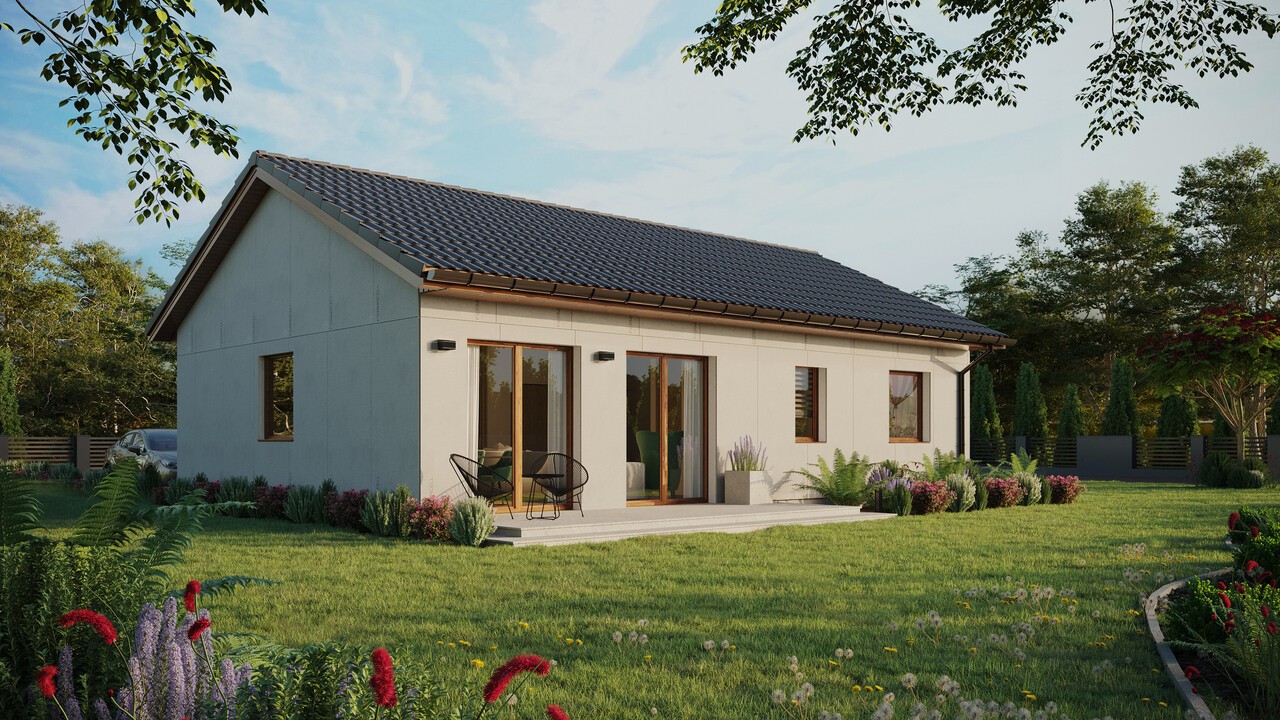 Dom ERDOL 2 XL ma powierzchnię 82 m² (130 m² w przypadku projektu z poddaszem użytkowym) i jest wydłużoną wersją domu ERDOL 2. Jest to doskonała propozycja dla wszystkich osób, które w swoim domu nie potrzebują dużej liczby pomieszczeń, jednak chcą skorzystać z dodatkowego metrażu, dzięki czemu zyskują więcej przestrzeni do wygodnego funkcjonowania. Zastosowane w tym projekcie nowoczesne technologie i ekologiczne rozwiązania sprawiają, że jest to dom energooszczędny, który funkcjonuje w harmonii z naturą. Do budowy wykorzystuje się drewno KVH stanowiące podstawę całej konstrukcji. Odpowiednio dobrane materiały izolacyjne sprawiają, że dom chroniony jest przed stratami ciepła.