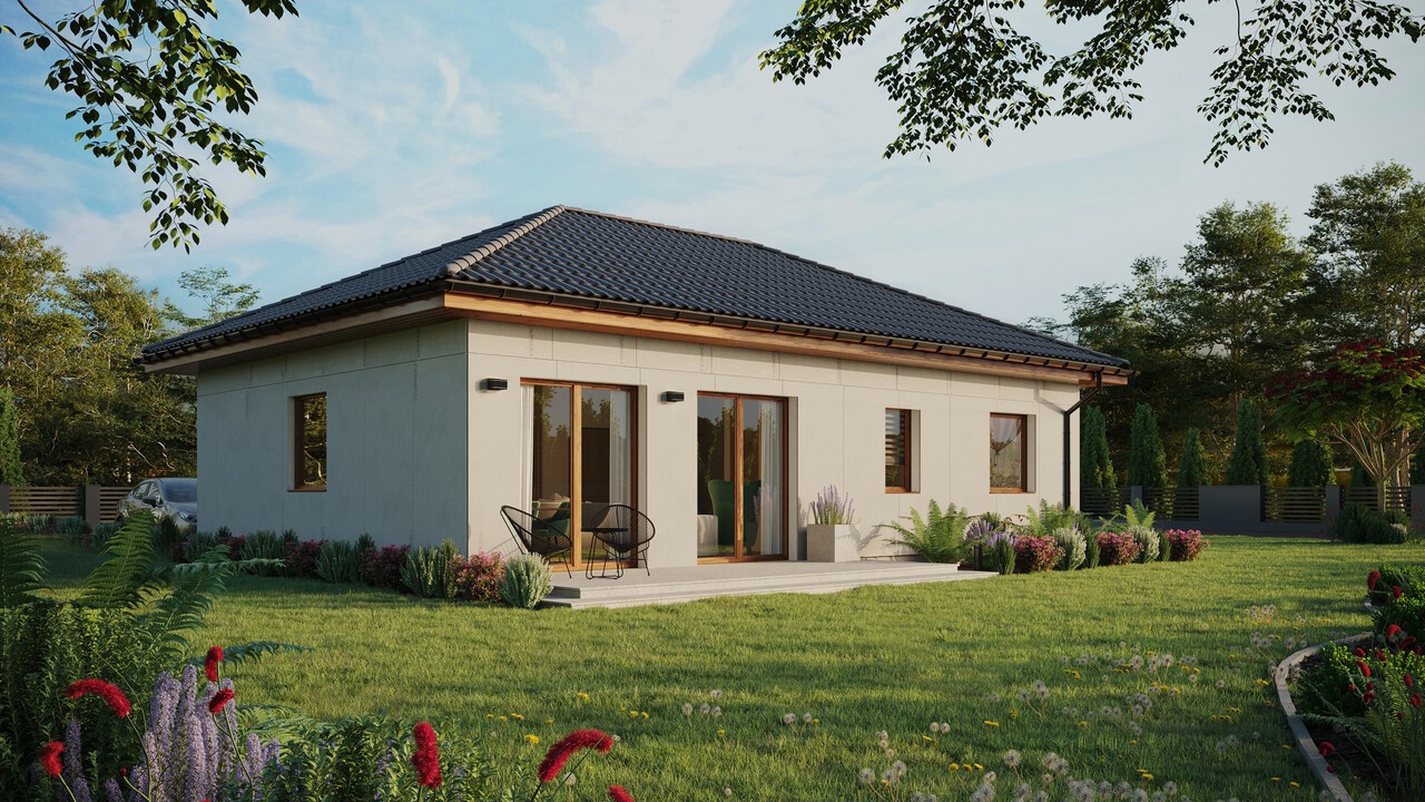Dom ERDOL 2 XL ma powierzchnię 82 m² (130 m² w przypadku projektu z poddaszem użytkowym) i jest wydłużoną wersją domu ERDOL 2. Jest to doskonała propozycja dla wszystkich osób, które w swoim domu nie potrzebują dużej liczby pomieszczeń, jednak chcą skorzystać z dodatkowego metrażu, dzięki czemu zyskują więcej przestrzeni do wygodnego funkcjonowania. Zastosowane w tym projekcie nowoczesne technologie i ekologiczne rozwiązania sprawiają, że jest to dom energooszczędny, który funkcjonuje w harmonii z naturą. Do budowy wykorzystuje się drewno KVH stanowiące podstawę całej konstrukcji. Odpowiednio dobrane materiały izolacyjne sprawiają, że dom chroniony jest przed stratami ciepła.