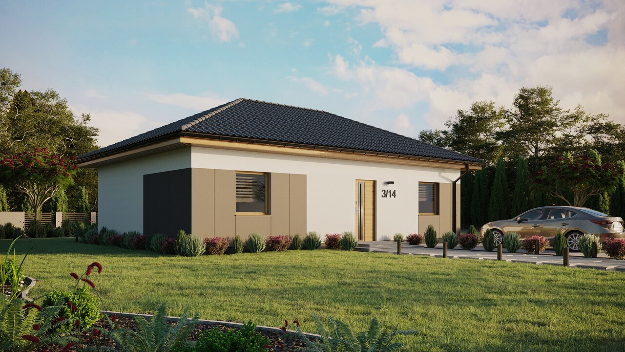 Dom ERDOL 2 XL ma powierzchnię 82 m² (130 m² w przypadku projektu z poddaszem użytkowym) i jest wydłużoną wersją domu ERDOL 2. Jest to doskonała propozycja dla wszystkich osób, które w swoim domu nie potrzebują dużej liczby pomieszczeń, jednak chcą skorzystać z dodatkowego metrażu, dzięki czemu zyskują więcej przestrzeni do wygodnego funkcjonowania. Zastosowane w tym projekcie nowoczesne technologie i ekologiczne rozwiązania sprawiają, że jest to dom energooszczędny, który funkcjonuje w harmonii z naturą. Do budowy wykorzystuje się drewno KVH stanowiące podstawę całej konstrukcji. Odpowiednio dobrane materiały izolacyjne sprawiają, że dom chroniony jest przed stratami ciepła.