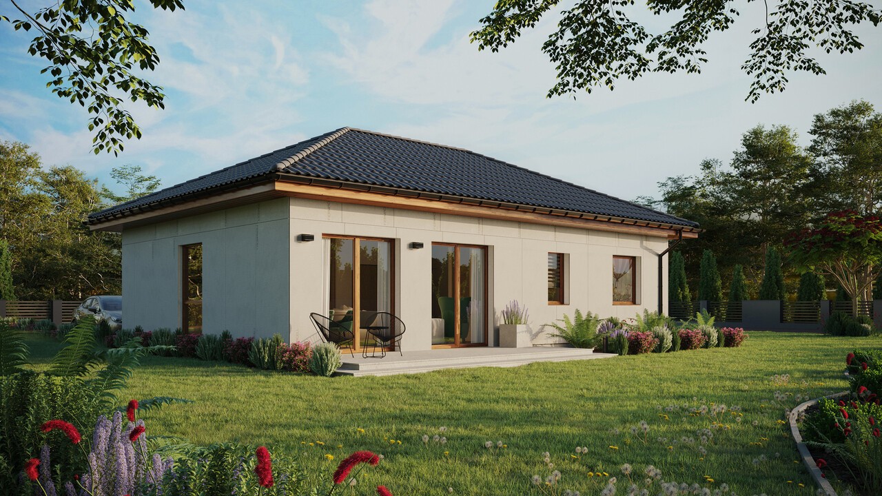 Dom ERDOL 2 XL ma powierzchnię 82 m² (130 m² w przypadku projektu z poddaszem użytkowym) i jest wydłużoną wersją domu ERDOL 2. Jest to doskonała propozycja dla wszystkich osób, które w swoim domu nie potrzebują dużej liczby pomieszczeń, jednak chcą skorzystać z dodatkowego metrażu, dzięki czemu zyskują więcej przestrzeni do wygodnego funkcjonowania. Zastosowane w tym projekcie nowoczesne technologie i ekologiczne rozwiązania sprawiają, że jest to dom energooszczędny, który funkcjonuje w harmonii z naturą. Do budowy wykorzystuje się drewno KVH stanowiące podstawę całej konstrukcji. Odpowiednio dobrane materiały izolacyjne sprawiają, że dom chroniony jest przed stratami ciepła.