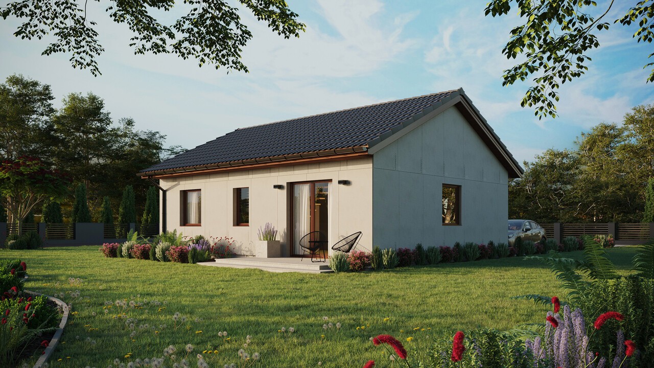 Dom ERDOL 2 o powierzchni 68 m² (107 m² w wersji z poddaszem użytkowym) został zaprojektowany tak, aby na kompaktowej przestrzeni zapewnić wygodę oraz wszystko to, co w codziennej przestrzeni jest najważniejsze. Zastosowane w nim nowoczesne technologie i ekologiczne rozwiązania, sprawiają, że jest to dom energooszczędny, który funkcjonuje w harmonii z naturą. Do budowy wykorzystuje się drewno KVH stanowiące podstawę całej konstrukcji. Odpowiednio dobrane materiały izolacyjne sprawiają, że dom chroniony jest przed stratami ciepła.