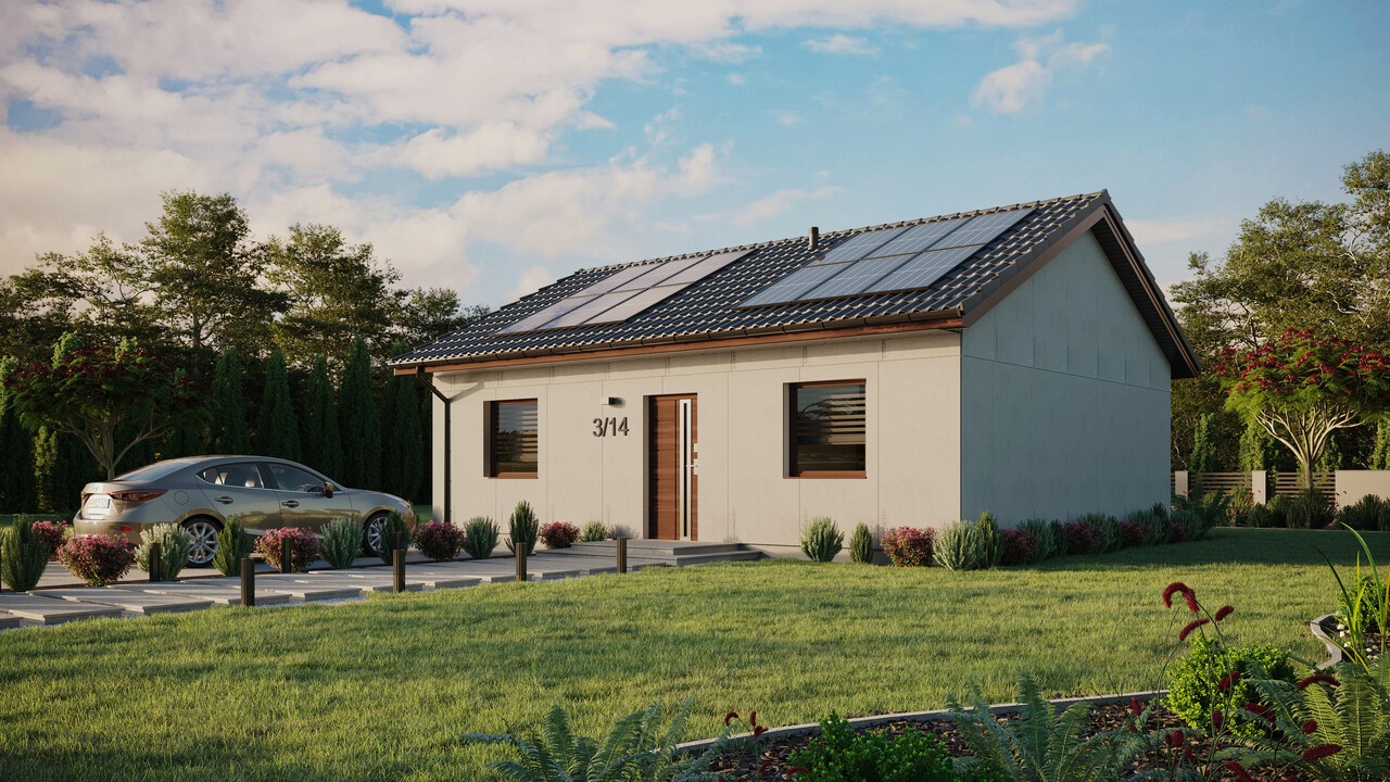 Dom ERDOL 2 o powierzchni 68 m² (107 m² w wersji z poddaszem użytkowym) został zaprojektowany tak, aby na kompaktowej przestrzeni zapewnić wygodę oraz wszystko to, co w codziennej przestrzeni jest najważniejsze. Zastosowane w nim nowoczesne technologie i ekologiczne rozwiązania, sprawiają, że jest to dom energooszczędny, który funkcjonuje w harmonii z naturą. Do budowy wykorzystuje się drewno KVH stanowiące podstawę całej konstrukcji. Odpowiednio dobrane materiały izolacyjne sprawiają, że dom chroniony jest przed stratami ciepła.