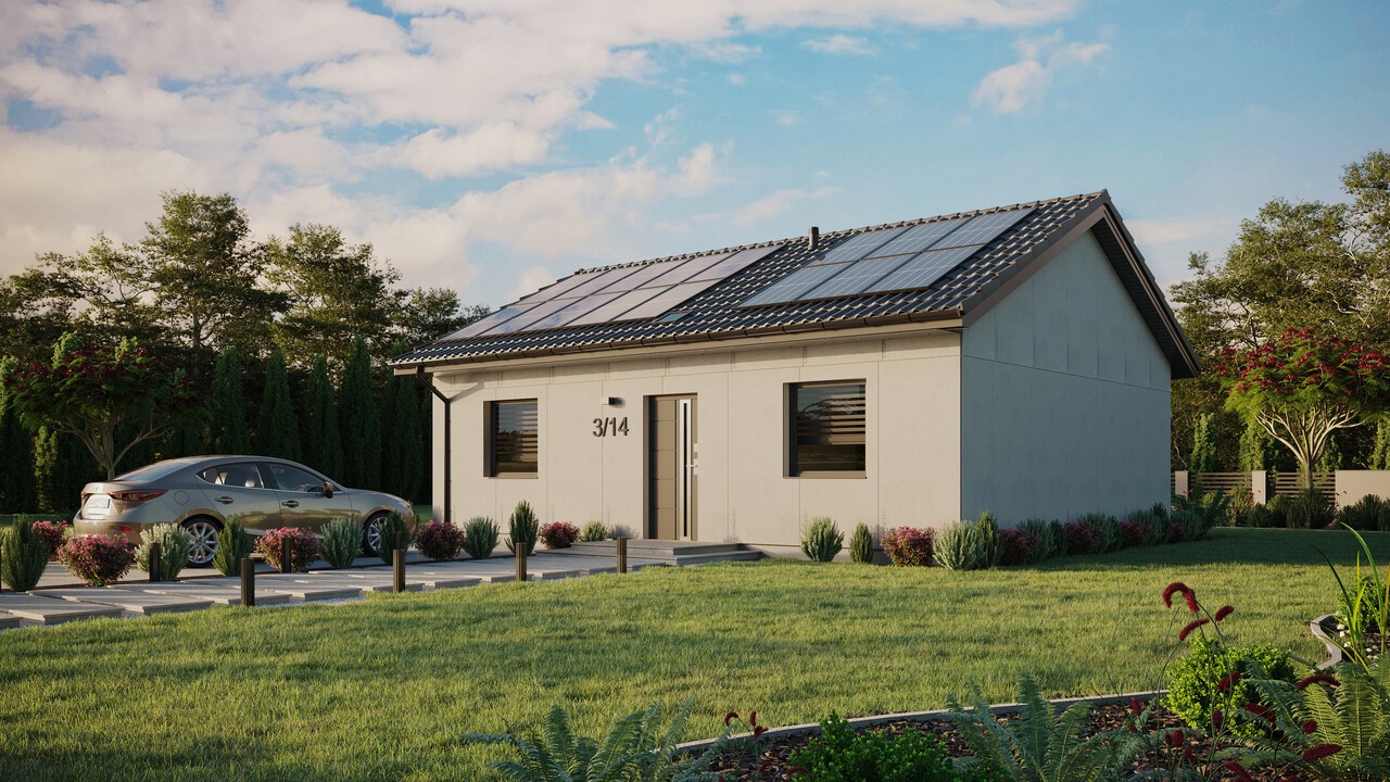 Dom ERDOL 2 o powierzchni 68 m² (107 m² w wersji z poddaszem użytkowym) został zaprojektowany tak, aby na kompaktowej przestrzeni zapewnić wygodę oraz wszystko to, co w codziennej przestrzeni jest najważniejsze. Zastosowane w nim nowoczesne technologie i ekologiczne rozwiązania, sprawiają, że jest to dom energooszczędny, który funkcjonuje w harmonii z naturą. Do budowy wykorzystuje się drewno KVH stanowiące podstawę całej konstrukcji. Odpowiednio dobrane materiały izolacyjne sprawiają, że dom chroniony jest przed stratami ciepła.