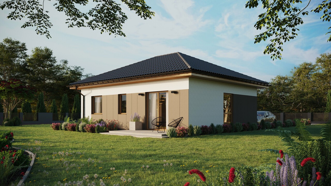 Dom ERDOL 2 o powierzchni 68 m² (107 m² w wersji z poddaszem użytkowym) został zaprojektowany tak, aby na kompaktowej przestrzeni zapewnić wygodę oraz wszystko to, co w codziennej przestrzeni jest najważniejsze. Zastosowane w nim nowoczesne technologie i ekologiczne rozwiązania, sprawiają, że jest to dom energooszczędny, który funkcjonuje w harmonii z naturą. Do budowy wykorzystuje się drewno KVH stanowiące podstawę całej konstrukcji. Odpowiednio dobrane materiały izolacyjne sprawiają, że dom chroniony jest przed stratami ciepła.