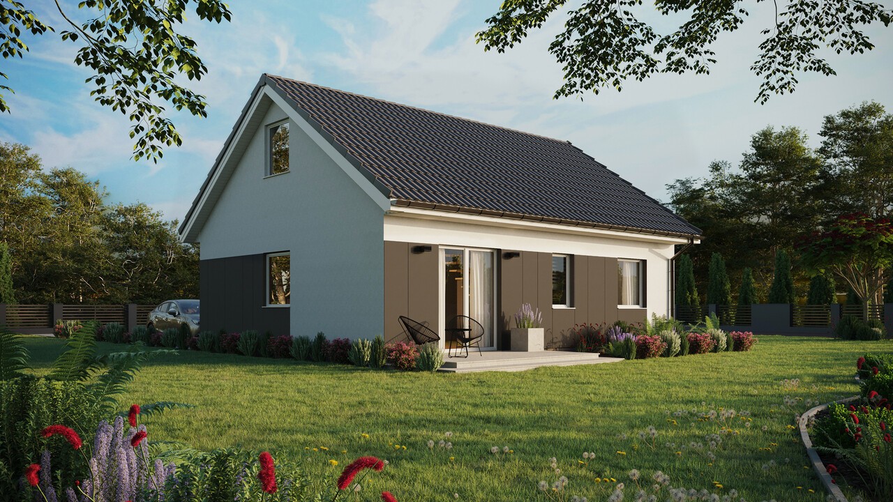 Dom ERDOL 2 o powierzchni 68 m² (107 m² w wersji z poddaszem użytkowym) został zaprojektowany tak, aby na kompaktowej przestrzeni zapewnić wygodę oraz wszystko to, co w codziennej przestrzeni jest najważniejsze. Zastosowane w nim nowoczesne technologie i ekologiczne rozwiązania, sprawiają, że jest to dom energooszczędny, który funkcjonuje w harmonii z naturą. Do budowy wykorzystuje się drewno KVH stanowiące podstawę całej konstrukcji. Odpowiednio dobrane materiały izolacyjne sprawiają, że dom chroniony jest przed stratami ciepła.