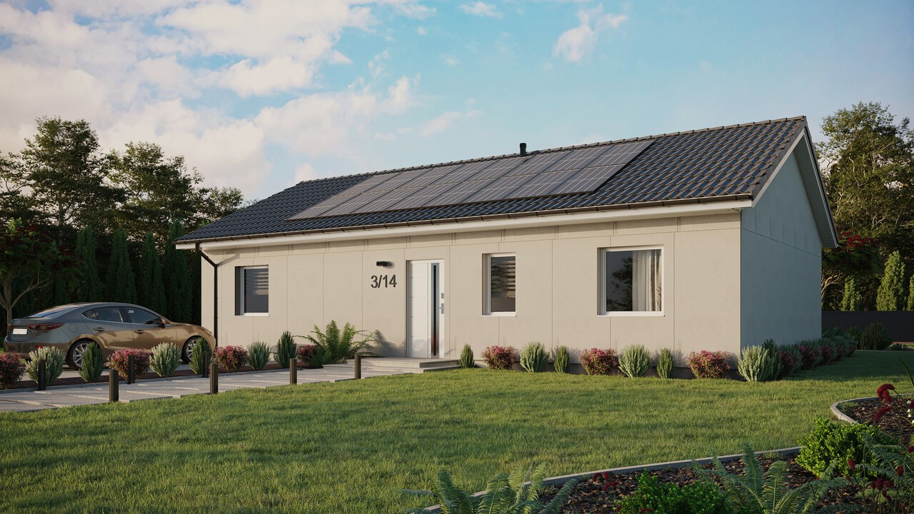 Projekt domu ERDOL 3 XL o powierzchni 97 m² (151 m² w wersji z poddaszem użytkowym) to projekt dla osób, które pragną mieć więcej wygodnej przestrzeni na co dzień. Dom w tej wersji to wydłużony ERDOL 3, dzięki czemu udało się zwiększyć powierzchnię salonu oraz wygospodarować osobną klatkę schodową (dla wersji z poddaszem użytkowym) lub dodatkowe pomieszczenie gospodarcze (dla wersji bez poddasza użytkowego). Jeśli zależy Ci na większym metrażu, ten projekt jest idealny dla Ciebie. Zastosowane w nim nowoczesne technologie i ekologiczne rozwiązania, sprawiają, że jest to dom energooszczędny, który funkcjonuje w harmonii z naturą. Do budowy wykorzystuje się drewno KVH stanowiące podstawę całej konstrukcji. Odpowiednio dobrane materiały izolacyjne sprawiają, że dom chroniony jest przed stratami ciepła.