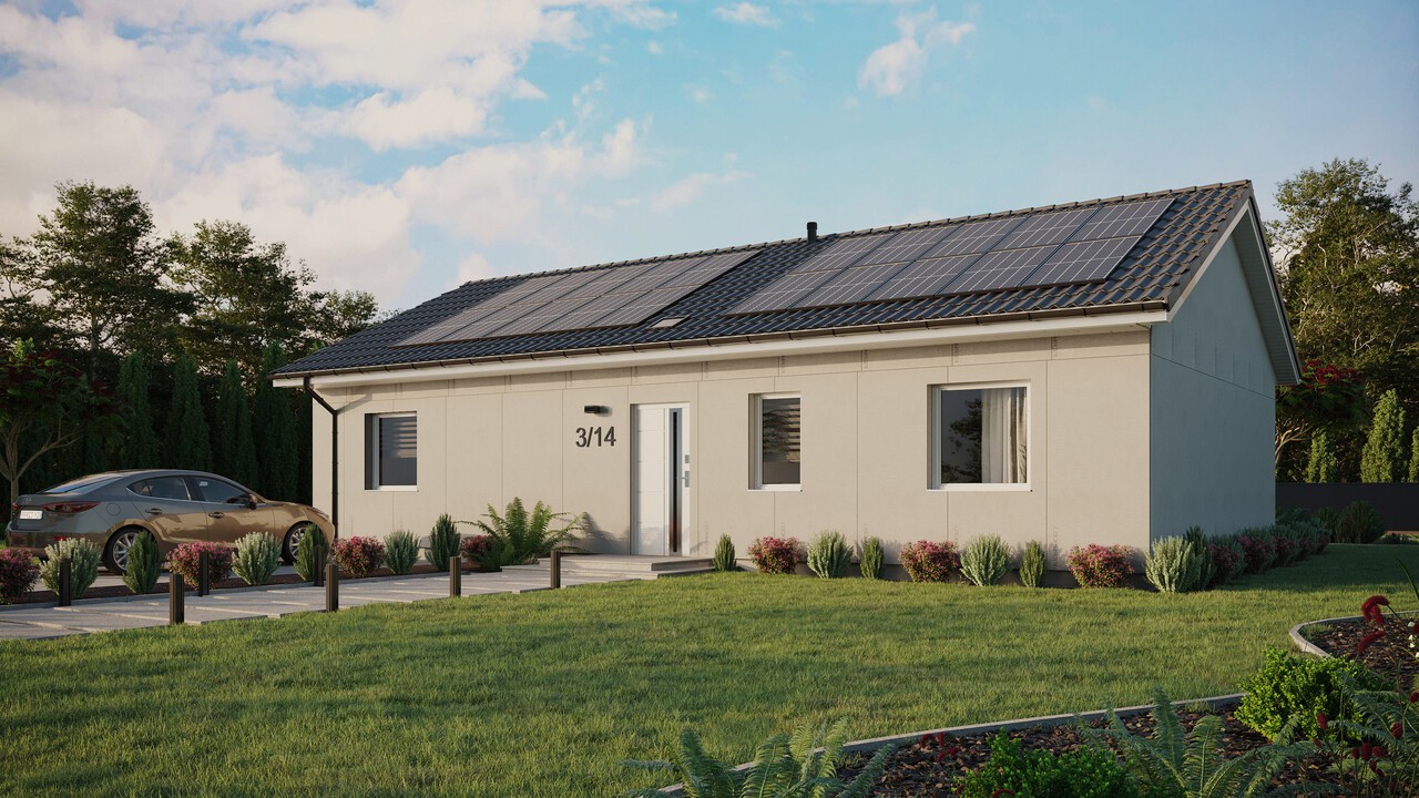 Projekt domu ERDOL 3 XL o powierzchni 97 m² (151 m² w wersji z poddaszem użytkowym) to projekt dla osób, które pragną mieć więcej wygodnej przestrzeni na co dzień. Dom w tej wersji to wydłużony ERDOL 3, dzięki czemu udało się zwiększyć powierzchnię salonu oraz wygospodarować osobną klatkę schodową (dla wersji z poddaszem użytkowym) lub dodatkowe pomieszczenie gospodarcze (dla wersji bez poddasza użytkowego). Jeśli zależy Ci na większym metrażu, ten projekt jest idealny dla Ciebie. Zastosowane w nim nowoczesne technologie i ekologiczne rozwiązania, sprawiają, że jest to dom energooszczędny, który funkcjonuje w harmonii z naturą. Do budowy wykorzystuje się drewno KVH stanowiące podstawę całej konstrukcji. Odpowiednio dobrane materiały izolacyjne sprawiają, że dom chroniony jest przed stratami ciepła.