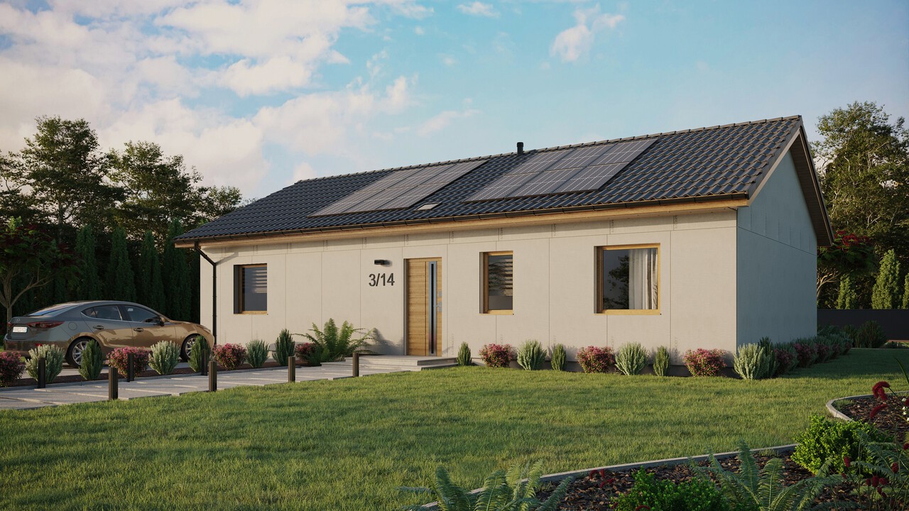 Projekt domu ERDOL 3 XL o powierzchni 97 m² (151 m² w wersji z poddaszem użytkowym) to projekt dla osób, które pragną mieć więcej wygodnej przestrzeni na co dzień. Dom w tej wersji to wydłużony ERDOL 3, dzięki czemu udało się zwiększyć powierzchnię salonu oraz wygospodarować osobną klatkę schodową (dla wersji z poddaszem użytkowym) lub dodatkowe pomieszczenie gospodarcze (dla wersji bez poddasza użytkowego). Jeśli zależy Ci na większym metrażu, ten projekt jest idealny dla Ciebie. Zastosowane w nim nowoczesne technologie i ekologiczne rozwiązania, sprawiają, że jest to dom energooszczędny, który funkcjonuje w harmonii z naturą. Do budowy wykorzystuje się drewno KVH stanowiące podstawę całej konstrukcji. Odpowiednio dobrane materiały izolacyjne sprawiają, że dom chroniony jest przed stratami ciepła.