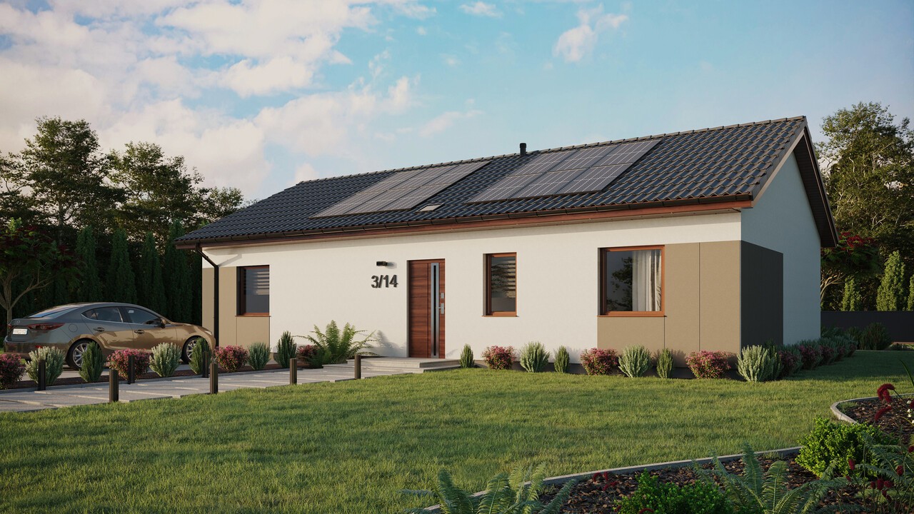 Projekt domu ERDOL 3 XL o powierzchni 97 m² (151 m² w wersji z poddaszem użytkowym) to projekt dla osób, które pragną mieć więcej wygodnej przestrzeni na co dzień. Dom w tej wersji to wydłużony ERDOL 3, dzięki czemu udało się zwiększyć powierzchnię salonu oraz wygospodarować osobną klatkę schodową (dla wersji z poddaszem użytkowym) lub dodatkowe pomieszczenie gospodarcze (dla wersji bez poddasza użytkowego). Jeśli zależy Ci na większym metrażu, ten projekt jest idealny dla Ciebie. Zastosowane w nim nowoczesne technologie i ekologiczne rozwiązania, sprawiają, że jest to dom energooszczędny, który funkcjonuje w harmonii z naturą. Do budowy wykorzystuje się drewno KVH stanowiące podstawę całej konstrukcji. Odpowiednio dobrane materiały izolacyjne sprawiają, że dom chroniony jest przed stratami ciepła.