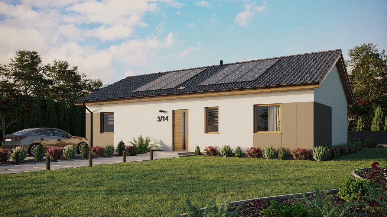 Projekt domu ERDOL 3 XL o powierzchni 97 m² (151 m² w wersji z poddaszem użytkowym) to projekt dla osób, które pragną mieć więcej wygodnej przestrzeni na co dzień. Dom w tej wersji to wydłużony ERDOL 3, dzięki czemu udało się zwiększyć powierzchnię salonu oraz wygospodarować osobną klatkę schodową (dla wersji z poddaszem użytkowym) lub dodatkowe pomieszczenie gospodarcze (dla wersji bez poddasza użytkowego). Jeśli zależy Ci na większym metrażu, ten projekt jest idealny dla Ciebie. Zastosowane w nim nowoczesne technologie i ekologiczne rozwiązania, sprawiają, że jest to dom energooszczędny, który funkcjonuje w harmonii z naturą. Do budowy wykorzystuje się drewno KVH stanowiące podstawę całej konstrukcji. Odpowiednio dobrane materiały izolacyjne sprawiają, że dom chroniony jest przed stratami ciepła.