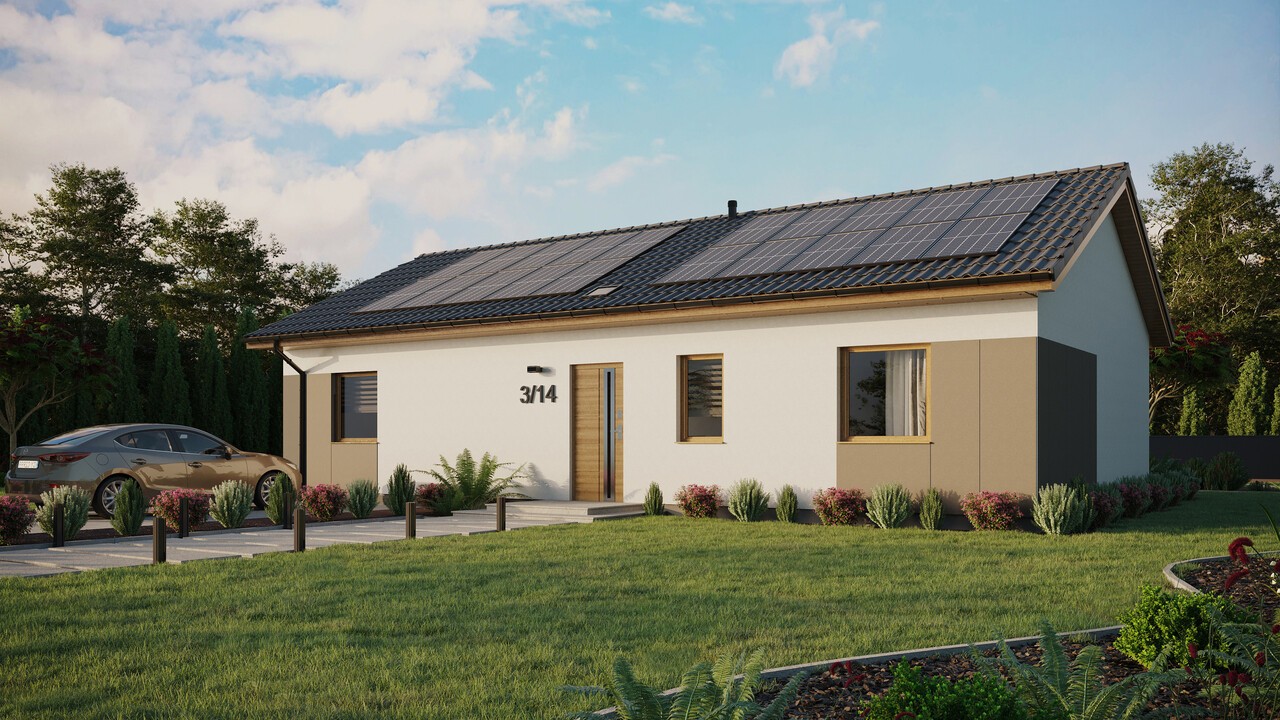 Projekt domu ERDOL 3 XL o powierzchni 97 m² (151 m² w wersji z poddaszem użytkowym) to projekt dla osób, które pragną mieć więcej wygodnej przestrzeni na co dzień. Dom w tej wersji to wydłużony ERDOL 3, dzięki czemu udało się zwiększyć powierzchnię salonu oraz wygospodarować osobną klatkę schodową (dla wersji z poddaszem użytkowym) lub dodatkowe pomieszczenie gospodarcze (dla wersji bez poddasza użytkowego). Jeśli zależy Ci na większym metrażu, ten projekt jest idealny dla Ciebie. Zastosowane w nim nowoczesne technologie i ekologiczne rozwiązania, sprawiają, że jest to dom energooszczędny, który funkcjonuje w harmonii z naturą. Do budowy wykorzystuje się drewno KVH stanowiące podstawę całej konstrukcji. Odpowiednio dobrane materiały izolacyjne sprawiają, że dom chroniony jest przed stratami ciepła.
