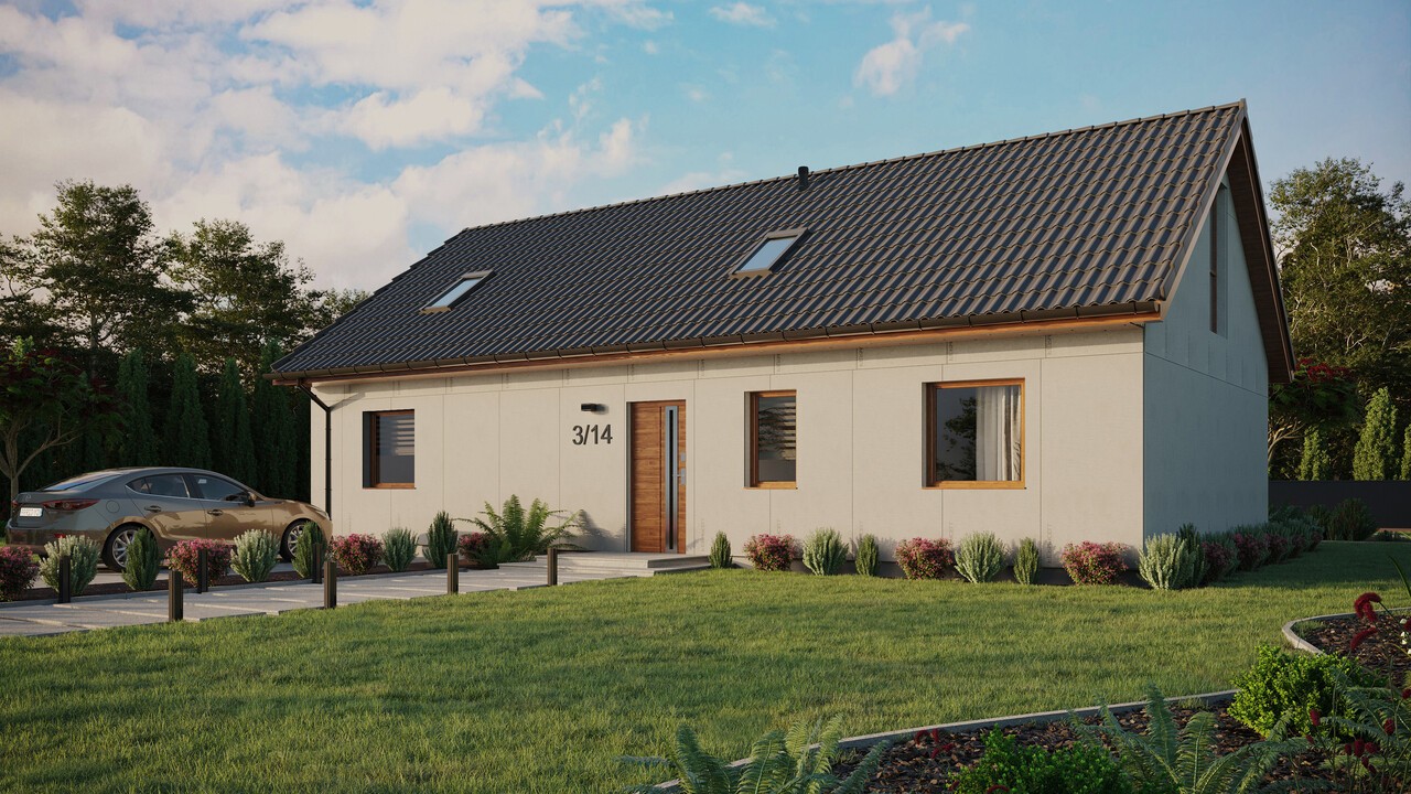 Projekt domu ERDOL 3 XL o powierzchni 97 m² (151 m² w wersji z poddaszem użytkowym) to projekt dla osób, które pragną mieć więcej wygodnej przestrzeni na co dzień. Dom w tej wersji to wydłużony ERDOL 3, dzięki czemu udało się zwiększyć powierzchnię salonu oraz wygospodarować osobną klatkę schodową (dla wersji z poddaszem użytkowym) lub dodatkowe pomieszczenie gospodarcze (dla wersji bez poddasza użytkowego). Jeśli zależy Ci na większym metrażu, ten projekt jest idealny dla Ciebie. Zastosowane w nim nowoczesne technologie i ekologiczne rozwiązania, sprawiają, że jest to dom energooszczędny, który funkcjonuje w harmonii z naturą. Do budowy wykorzystuje się drewno KVH stanowiące podstawę całej konstrukcji. Odpowiednio dobrane materiały izolacyjne sprawiają, że dom chroniony jest przed stratami ciepła.