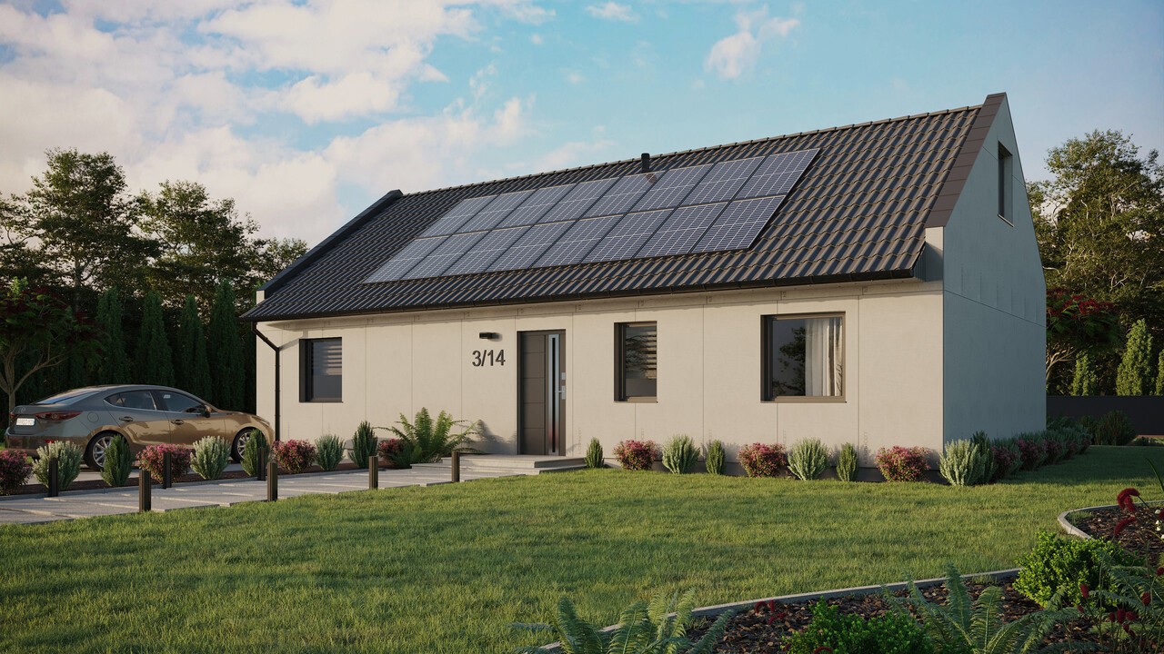 W skład wybranej konfiguracji wchodzi instalacja fotowoltaiczna 6,4 kWp (16 paneli) z inwerterem 3-fazowym 6 kW wraz z montażem. Rozmieszczenie paneli jest przykładowe, szczegóły instalacji do ustalenia z koordynatorem projektu.