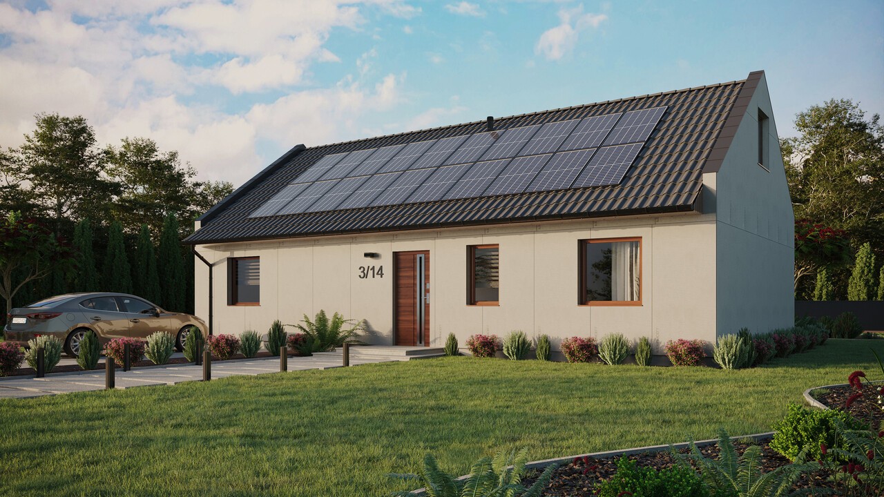 - Instalacja fotowoltaiczna 8,0 kWp (20 paneli) z inwerterem 3-fazowym 8 kW wraz z montażem