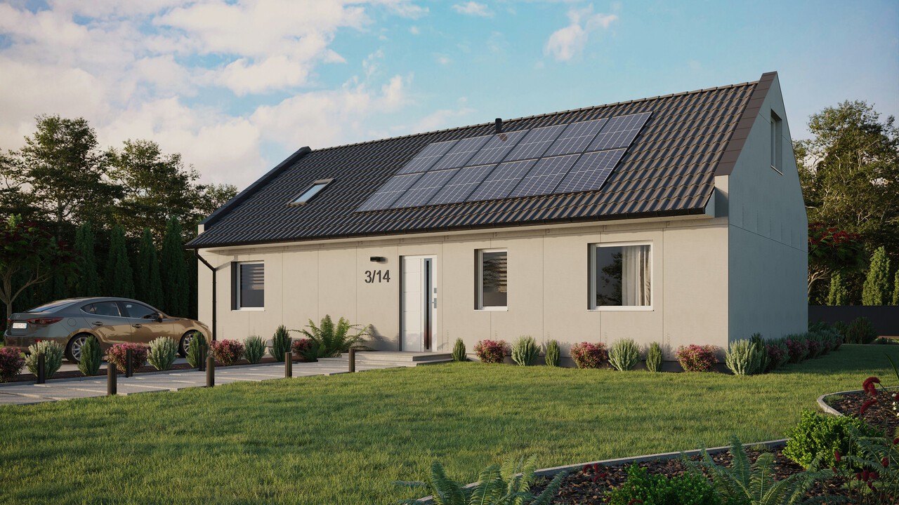 W skład wybranej konfiguracji wchodzi instalacja fotowoltaiczna 4,8 kWp (12 paneli) z inwerterem 3-fazowym 4 kW wraz z montażem. Rozmieszczenie paneli jest przykładowe, szczegóły instalacji do ustalenia z koordynatorem projektu.