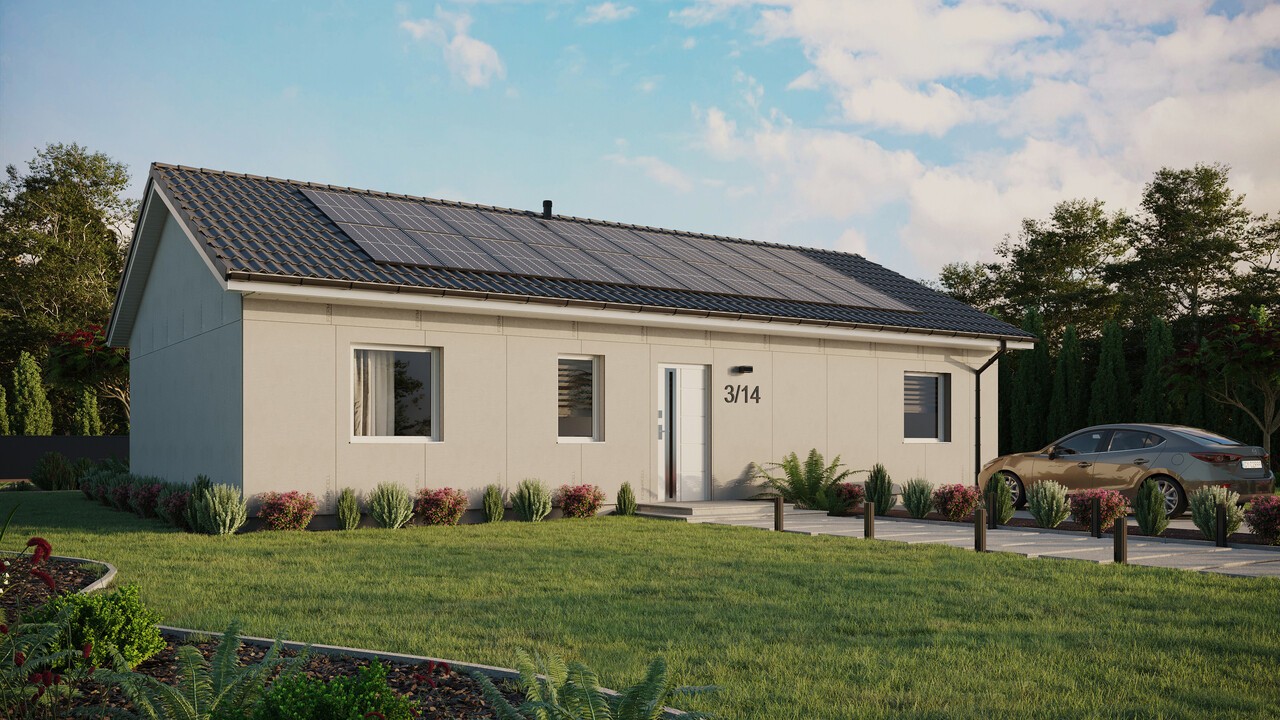 Projekt domu ERDOL 3 XL o powierzchni 97 m² (151 m² w wersji z poddaszem użytkowym) to projekt dla osób, które pragną mieć więcej wygodnej przestrzeni na co dzień. Dom w tej wersji to wydłużony ERDOL 3, dzięki czemu udało się zwiększyć powierzchnię salonu oraz wygospodarować osobną klatkę schodową (dla wersji z poddaszem użytkowym) lub dodatkowe pomieszczenie gospodarcze (dla wersji bez poddasza użytkowego). Jeśli zależy Ci na większym metrażu, ten projekt jest idealny dla Ciebie. Zastosowane w nim nowoczesne technologie i ekologiczne rozwiązania, sprawiają, że jest to dom energooszczędny, który funkcjonuje w harmonii z naturą. Do budowy wykorzystuje się drewno KVH stanowiące podstawę całej konstrukcji. Odpowiednio dobrane materiały izolacyjne sprawiają, że dom chroniony jest przed stratami ciepła.
