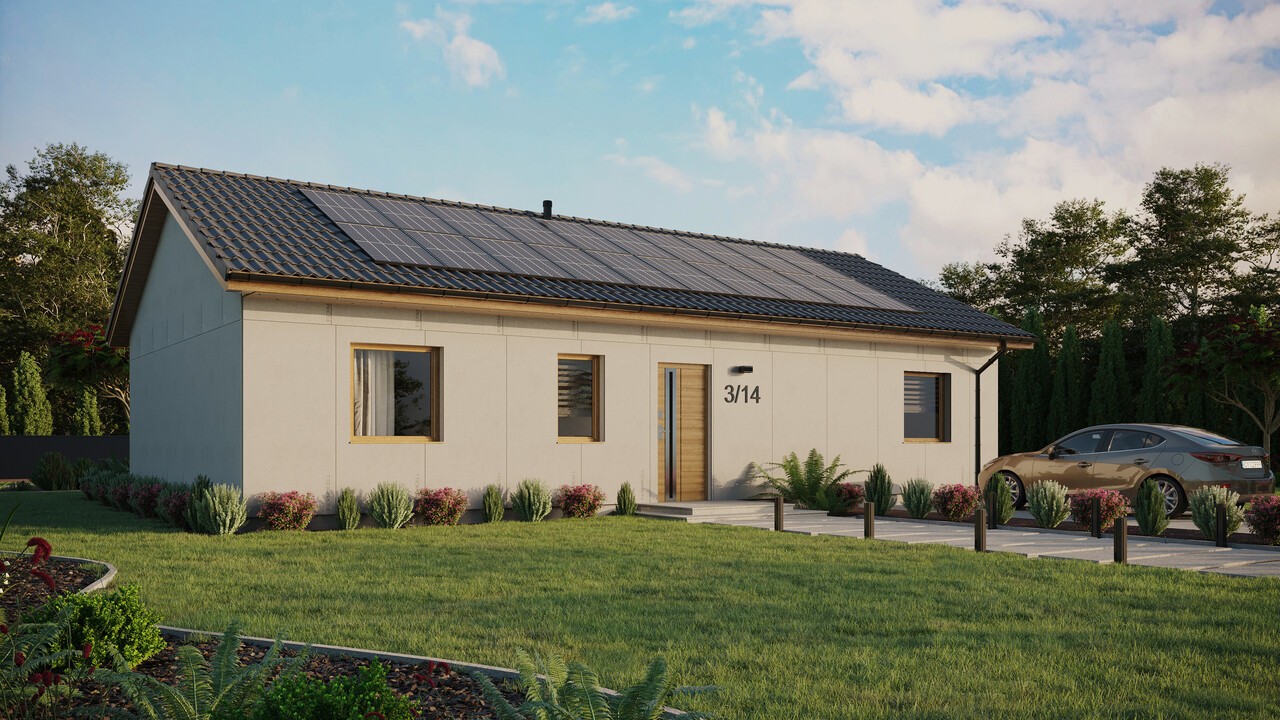 Projekt domu ERDOL 3 XL o powierzchni 97 m² (151 m² w wersji z poddaszem użytkowym) to projekt dla osób, które pragną mieć więcej wygodnej przestrzeni na co dzień. Dom w tej wersji to wydłużony ERDOL 3, dzięki czemu udało się zwiększyć powierzchnię salonu oraz wygospodarować osobną klatkę schodową (dla wersji z poddaszem użytkowym) lub dodatkowe pomieszczenie gospodarcze (dla wersji bez poddasza użytkowego). Jeśli zależy Ci na większym metrażu, ten projekt jest idealny dla Ciebie. Zastosowane w nim nowoczesne technologie i ekologiczne rozwiązania, sprawiają, że jest to dom energooszczędny, który funkcjonuje w harmonii z naturą. Do budowy wykorzystuje się drewno KVH stanowiące podstawę całej konstrukcji. Odpowiednio dobrane materiały izolacyjne sprawiają, że dom chroniony jest przed stratami ciepła.
