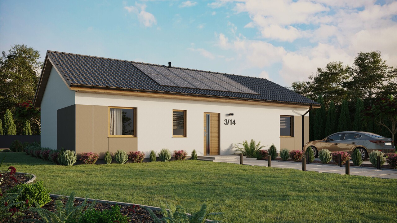 Projekt domu ERDOL 3 XL o powierzchni 97 m² (151 m² w wersji z poddaszem użytkowym) to projekt dla osób, które pragną mieć więcej wygodnej przestrzeni na co dzień. Dom w tej wersji to wydłużony ERDOL 3, dzięki czemu udało się zwiększyć powierzchnię salonu oraz wygospodarować osobną klatkę schodową (dla wersji z poddaszem użytkowym) lub dodatkowe pomieszczenie gospodarcze (dla wersji bez poddasza użytkowego). Jeśli zależy Ci na większym metrażu, ten projekt jest idealny dla Ciebie. Zastosowane w nim nowoczesne technologie i ekologiczne rozwiązania, sprawiają, że jest to dom energooszczędny, który funkcjonuje w harmonii z naturą. Do budowy wykorzystuje się drewno KVH stanowiące podstawę całej konstrukcji. Odpowiednio dobrane materiały izolacyjne sprawiają, że dom chroniony jest przed stratami ciepła.