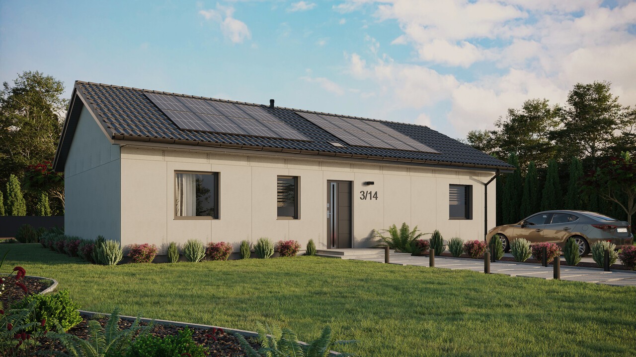 Projekt domu ERDOL 3 XL o powierzchni 97 m² (151 m² w wersji z poddaszem użytkowym) to projekt dla osób, które pragną mieć więcej wygodnej przestrzeni na co dzień. Dom w tej wersji to wydłużony ERDOL 3, dzięki czemu udało się zwiększyć powierzchnię salonu oraz wygospodarować osobną klatkę schodową (dla wersji z poddaszem użytkowym) lub dodatkowe pomieszczenie gospodarcze (dla wersji bez poddasza użytkowego). Jeśli zależy Ci na większym metrażu, ten projekt jest idealny dla Ciebie. Zastosowane w nim nowoczesne technologie i ekologiczne rozwiązania, sprawiają, że jest to dom energooszczędny, który funkcjonuje w harmonii z naturą. Do budowy wykorzystuje się drewno KVH stanowiące podstawę całej konstrukcji. Odpowiednio dobrane materiały izolacyjne sprawiają, że dom chroniony jest przed stratami ciepła.