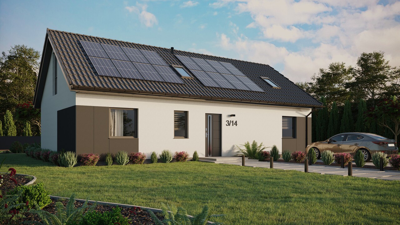 W skład wybranej konfiguracji wchodzi instalacja fotowoltaiczna 6,4 kWp (16 paneli) z inwerterem 3-fazowym 6 kW wraz z montażem. Rozmieszczenie paneli jest przykładowe, szczegóły instalacji do ustalenia z koordynatorem projektu.
