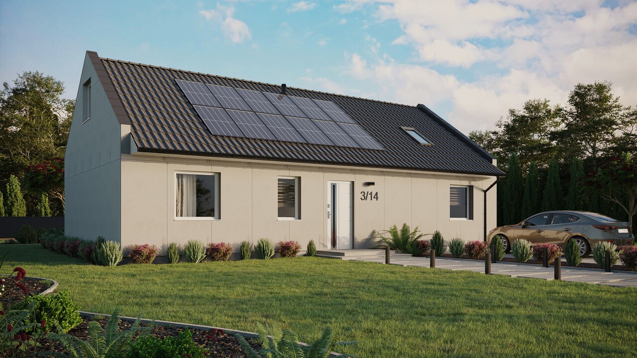 W skład wybranej konfiguracji wchodzi instalacja fotowoltaiczna 4,8 kWp (12 paneli) z inwerterem 3-fazowym 4 kW wraz z montażem. Rozmieszczenie paneli jest przykładowe, szczegóły instalacji do ustalenia z koordynatorem projektu.