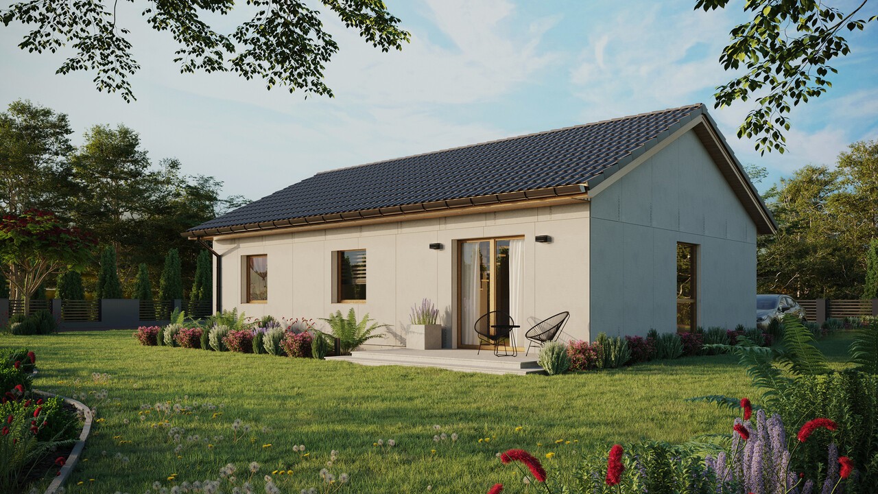 Projekt domu ERDOL 3 o powierzchni 82 m² (130 m² w wersji z poddaszem użytkowym) został stworzony tak, aby budynek zapewnił swoim mieszkańcom wygodne i przestronne wnętrza, w których znajdzie się miejsce na wszystko, czego potrzeba. Zastosowane w nim nowoczesne technologie i ekologiczne rozwiązania, sprawiają, że jest to dom energooszczędny, który funkcjonuje w harmonii z naturą. Do budowy wykorzystuje się drewno KVH stanowiące podstawę całej konstrukcji. Odpowiednio dobrane materiały izolacyjne sprawiają, że dom chroniony jest przed stratami ciepła.