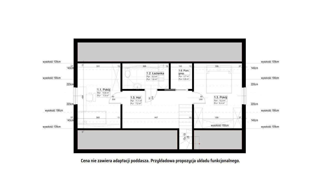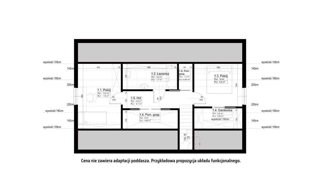 12. Zagospodarowanie i aranżacja poddasza, tj. wykonanie wentylacji poddasza, wykonanie podłogi, ścian działowych, sufitów i skosów, rozprowadzenie instalacji elektrycznej oraz wodno-kanalizacyjnej